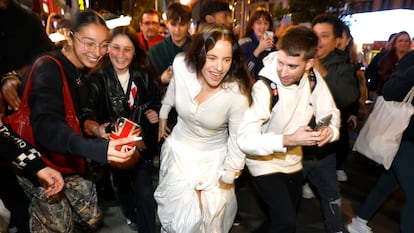 El acto que improvisó Rosalía el lunes partió de un mensaje en sus redes sociales. La cantante estaba haciendo un directo en TikTok en el que informó de que iba a haber “sorpresas” en la plaza de Callao. A partir de ahí, sus seguidores acudieron en masa a la convocatoria, lo que provocó aglomeraciones, afecciones al transporte público y un atasco en la Gran Vía que sufrió la propia artista al llegar lugar. Por ese motivo, dejó su coche parado en mitad de la calle y fue corriendo hasta el punto de encuentro, pero el recibimiento fue tal que salió huyendo y se refugió en el hotel Vincci Capitol, el del mítico cartel de Schweppes.