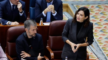 Antes, ha tenido un toma y daca con la portavoz de Vox, Isabel Pérez-Moñino, a la que ha acusado de tener un “discurso cateto” al relacionar inmigración y falta de vivienda con salud mental. Pérez-Moñino insistía en que los madrileños están desayunando orfidal y cenando diazepam, en parte por las políticas del Gobierno. A Ayuso se ha ofendido y le ha llamado pueblerina dos veces. Defendió, como hace a veces el filósofo Byung-Chul Han, que esto se trata de una epidemia mundial debido a las redes sociales y, poniendo su cosecha, a las drogas. Ha dado un paso más al insinuar que los diputados de la oposición eran tolerantes con el consumo. “De eso no quieren hablar…”, ha deslizado.