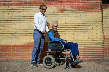 Cuando Domingo salía de su casa de Puente de Vallecas al paso marcado por Mínguez, que empujaba con calma la silla de ruedas camino hacia el parque del Cerro del Tío Pío, su hijo observaba la escena desde el portal. Lo hacía con una mezcla de serenidad y gratitud por el tiempo que el voluntario compartía con su padre, pese a no conocerlo de nada.