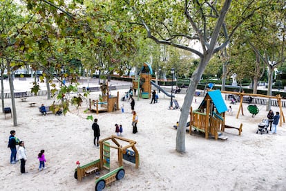 Quienes busquen el paraíso de los parques infantiles de Madrid lo descubrirán a escasos metros del Palacio Real. Allí, oculto tras los plátanos de los Jardines de Lepanto, se encuentra el escenario ideal para que los más pequeños se diviertan y dejen volar su imaginación. Al recinto no le falta detalle: es espacioso, está lejos del tráfico y, además, está equipado con una amplia variedad de juegos, zonas de descanso, vegetación y una buena iluminación. Todas esas comodidades han convertido al parque de los Jardines de Lepanto en el mejor área de juego de la capital, según una investigación de la arquitecta Carla Silva (Oviedo, 40 años). La experta aclara que ese espacio no es el que ha recibido la nota media más alta, pero sí que ha sido el que han puntuado más personas —18 en total—.