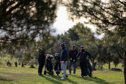 A Jesús Rodríguez lo acompañan Lourdes Peña, Luis Molinero y Sonia Rodríguez. En los torneos, los participantes se dividen en grupos de cuatro para hacer el recorrido. Ellos rondan los 60 años y el golf los ha hecho amigos. “Así juega un presidente”, le grita un colega desde lejos. En el golf profesional, las normas de protocolo prohíben este tipo de muestras, pero en un torneo amistoso la etiqueta no es tan estricta. El club Los Lunes al Golf fue creado hace 21 años por un grupo de amiguetes que eran aficionados a este deporte. Inicialmente eran 20 y ahora son 130 miembros. Jesús es jubilado, un antiguo directivo de Telefónica. Tras practicar varios deportes, dice que ha encontrado un sitio ideal en el mundo del golf donde ha forjado buenas amistades. ”En Madrid hay muchas asociaciones, sobre todo de esto, de amigos”, comenta. Después de terminar el juego ―que suele tardar entre cuatro y cinco horas en campos de 18 hoyos―, los miembros quedan para comer y compartir. Los Lunes al Golf organiza alrededor de 40 torneos al año para sus socios y es una pequeña muestra de un colectivo amplio: la Real Federación de Golf de Madrid tiene 63 clubes afiliados.
