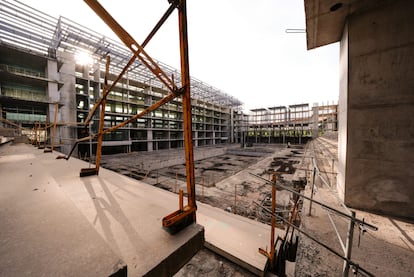 Cerca de 15 años de espera y un revés judicial sin resolver de por medio. En el terreno que rodea al estadio Metropolitano, concebido para unos Juegos Olímpicos que nunca fueron, permanece a medio construir el esqueleto del centro de deporte acuático, pensado para que atletas olímpicos hicieran pruebas de natación o waterpolo. La parcela es una de las que el Ayuntamiento de la capital cedió al Atlético de Madrid ―más de 200.000 metros de suelo público― durante 75 años para construir parte de lo que se bautizó como Ciudad del Deporte. Para llevarlo a cabo, el Consistorio madrileño aprobó un plan especial que permitiría, en concreto en esa zona del edificio, los usos de hospedaje. Esto es, podría construirse, entre otras edificaciones, un hotel, una de las ideas iniciales propuestas por el club. El pasado diciembre, el Tribunal Superior de Justicia de la región (TSJM) frustró esta iniciativa y tumbó el plan urbanístico porque permitir un hotel “supone una transformación radical de la finalidad pública de la parcela”. El Ayuntamiento recurrió al Tribunal Supremo, que aún no se ha pronunciado. El alcalde, José Luis Martínez-Almeida, ha presentado este martes un nuevo proyecto para la zona, que ya no incluye el polémico hotel, y un portavoz municipal asegura que lo presentado ahora sí cumple con la normativa vigente y no requiere de un segundo plan.