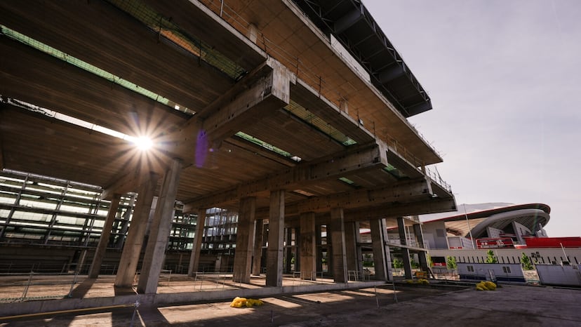 Cerca de 15 años de espera y un revés judicial sin resolver de por medio. En el terreno que rodea al estadio Metropolitano, concebido para unos Juegos Olímpicos que nunca fueron, permanece a medio construir el esqueleto del centro de deporte acuático, pensado para que atletas olímpicos hicieran pruebas de natación o waterpolo. La parcela es una de las que el Ayuntamiento de la capital cedió al Atlético de Madrid ―más de 200.000 metros de suelo público― durante 75 años para construir parte de lo que se bautizó como Ciudad del Deporte. Para llevarlo a cabo, el Consistorio madrileño aprobó un plan especial que permitiría, en concreto en esa zona del edificio, los usos de hospedaje. Esto es, podría construirse, entre otras edificaciones, un hotel, una de las ideas iniciales propuestas por el club. El pasado diciembre, el Tribunal Superior de Justicia de la región (TSJM) frustró esta iniciativa y tumbó el plan urbanístico porque permitir un hotel “supone una transformación radical de la finalidad pública de la parcela”. El Ayuntamiento recurrió al Tribunal Supremo, que aún no se ha pronunciado. El alcalde, José Luis Martínez-Almeida, ha presentado este martes un nuevo proyecto para la zona, que ya no incluye el polémico hotel, y un portavoz municipal asegura que lo presentado ahora sí cumple con la normativa vigente y no requiere de un segundo plan.