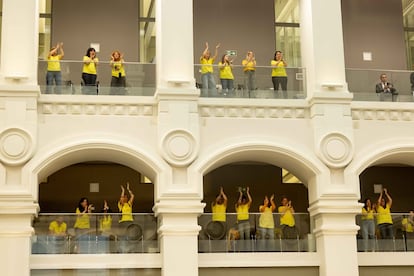 Tensión en las bancadas. “Ruego a los servicios de la Cámara que acompañen fuera a todas las personas de la tribuna de invitados que están gritando”, ha pedido el presidente de la mesa, Borja Fanjul, tras un par de segundos de protesta. Las trabajadoras, distribuidas en las dos plantas para invitados, han seguido con la reivindicación, que ha terminado con decenas de folletos volando tras los asientos de los concejales populares. “¡Lo llaman guardería y no lo es!”, han coreado al abandonar la sala.