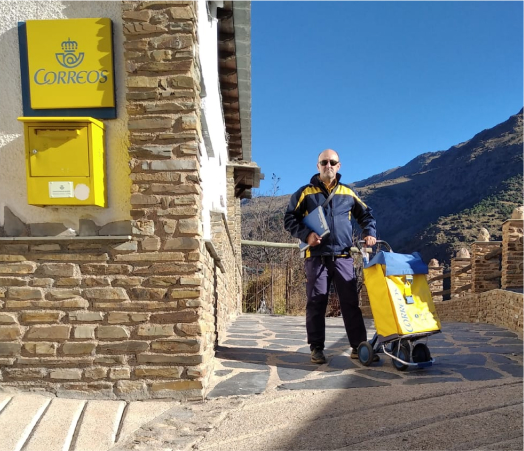 La oficina, su pequeño refugio de montaña, es pequeñita, apenas 10 metros cuadrados, y abre únicamente media hora al día entre semana. Desde allí gestiona la correspondencia y los servicios de envío habituales. Para los de más envergadura está la oficina de Órgiva, digitalizada y totalmente equipada, a una distancia de 40 kilómetros. “Lo que más me llena de mi trabajo es la relación de confianza entre todos los vecinos, siempre me dan las gracias por el esfuerzo físico y me regalan paquetes de salchichón o cuñas de queso”, bromea Reyes.