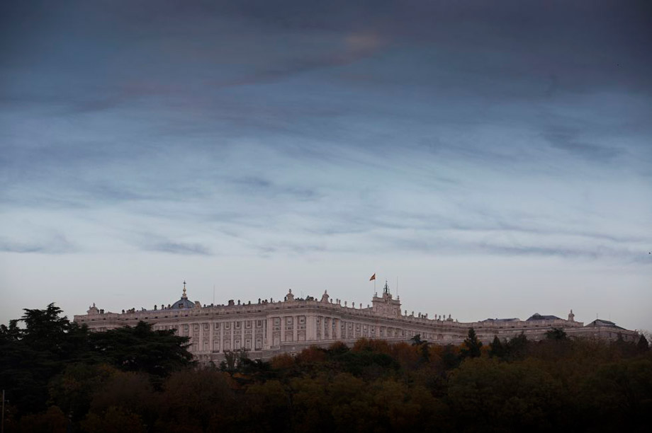 Goya pintó en 1788 este almuerzo con la ciudad de fondo en el que destacan el Palacio Real y la iglesia de San Francisco el Grande con su enorme cúpula. La fotografía de la derecha muestra ese paisaje más de 200 años después. Compare la obra, desplazando la cortinilla, con la panorámica actual