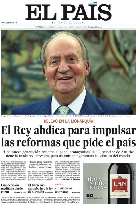 “Los reyes no abdican, mueren”, repitió a sus próximos, durante muchos años, el rey Juan Carlos. Cada vez que sus sucesivos ingresos hospitalarios –seis en dos años- encendían el debate de su abdicación, él lo desmintió. La última vez que lo hizo fue en su discurso de la pasada Nochebuena: “Quiero transmitiros como Rey de España mi decisión de continuar...”, dijo. Fue solo seis meses antes de dirigirse de nuevo a los españoles para comunicar que había tomado la decisión de ceder al trono a su hijo para que pasara “a primera línea una generación más joven, con nuevas energías, decidida a emprender con determinación las transformaciones y reformas que la coyuntura actual está demandando”.