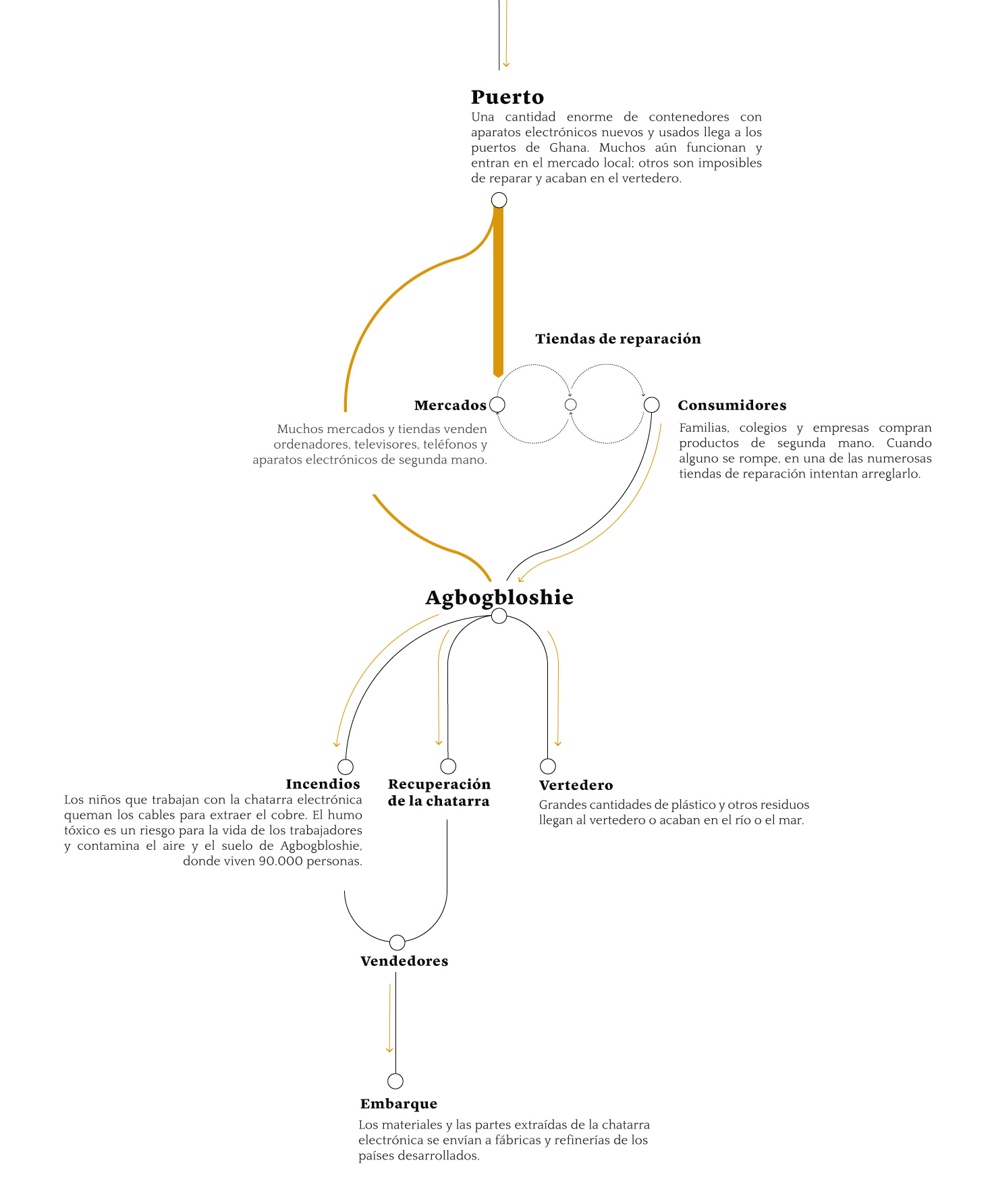 Se han descubierto unas cantidades inquietantes de bifenilos policlorados (PCB) en los análisis de la leche materna en la zona de Agbogbloshie. Los PCB son compuestos muy tóxicos presentes en los antiguos aparatos eléctricos. Las muestras analizadas han revelado niveles entre dos y 34 veces superiores al límite permitido por los estándares internacionales de PCB.