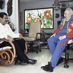 Se reúne con Nicolás Maduro. En todas las imágenes difundidas, Fidel aparecía sentado.