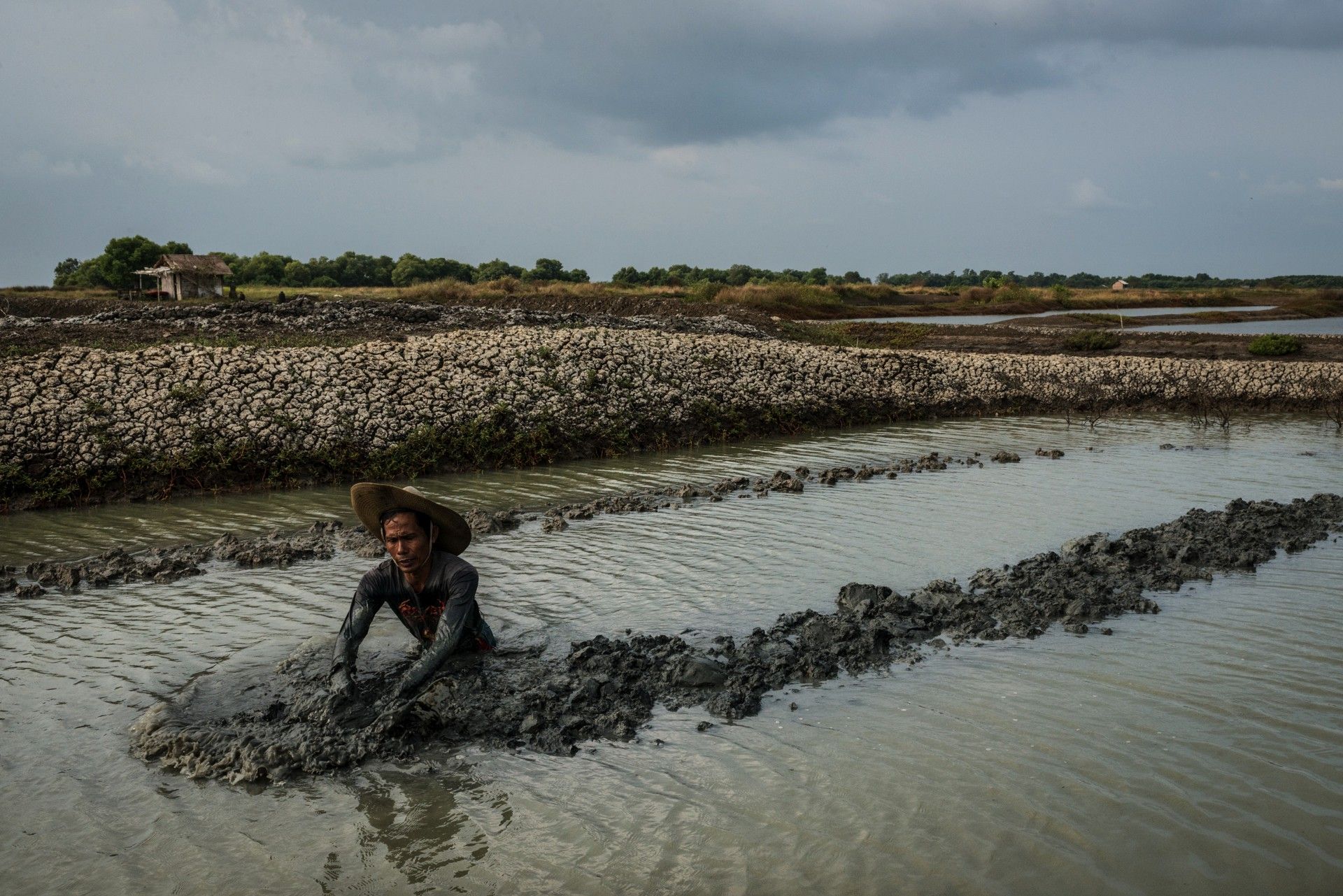 En las tres últimas décadas, se han abierto nuevos claros en los manglares para expandir la piscicultura y el desarrollo urbano. La modificación del entorno natural ha dejado la tierra y los pueblos sobre ella a merced de las corrientes oceánicas, las olas, las mareas.