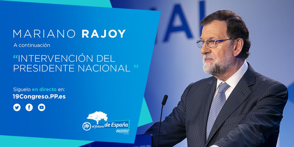 - Mariano Rajoy BreyHace 1 semanaRT @PPopular: Todo listo para que comience el #19CongresoPP. 📡 Podrás seguirlo en directo, a partir de las 16:30, en https://t.co/syuHaFZj…