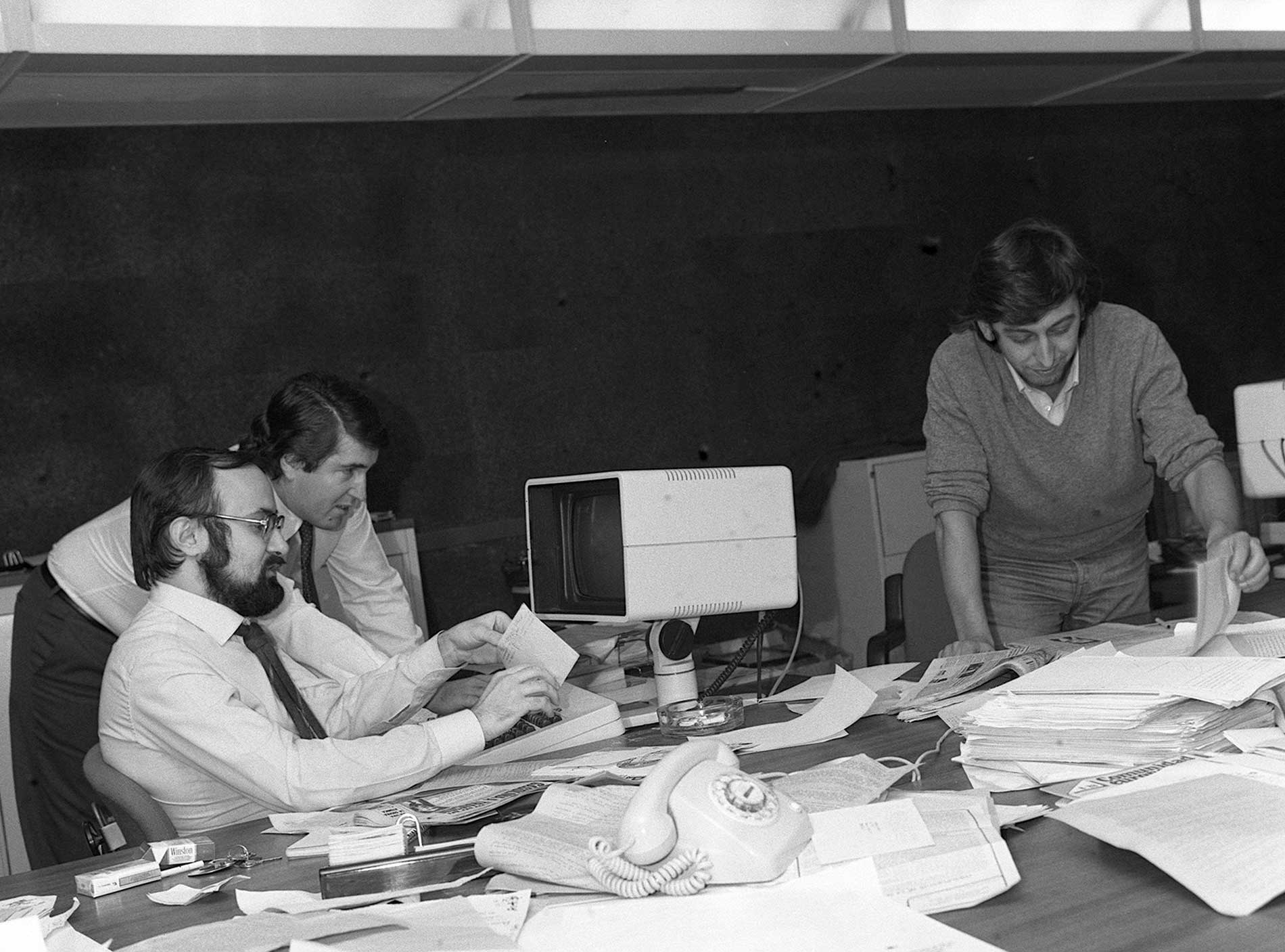 Leer más25 de abril - EL PAÍS perdió en 2017 a uno de sus fundadores, Joaquín Prieto (en la imagen, sentado), que formó parte de la Redacción desde los comienzos hasta muy pocos días antes de su fallecimiento, a los 65 años.