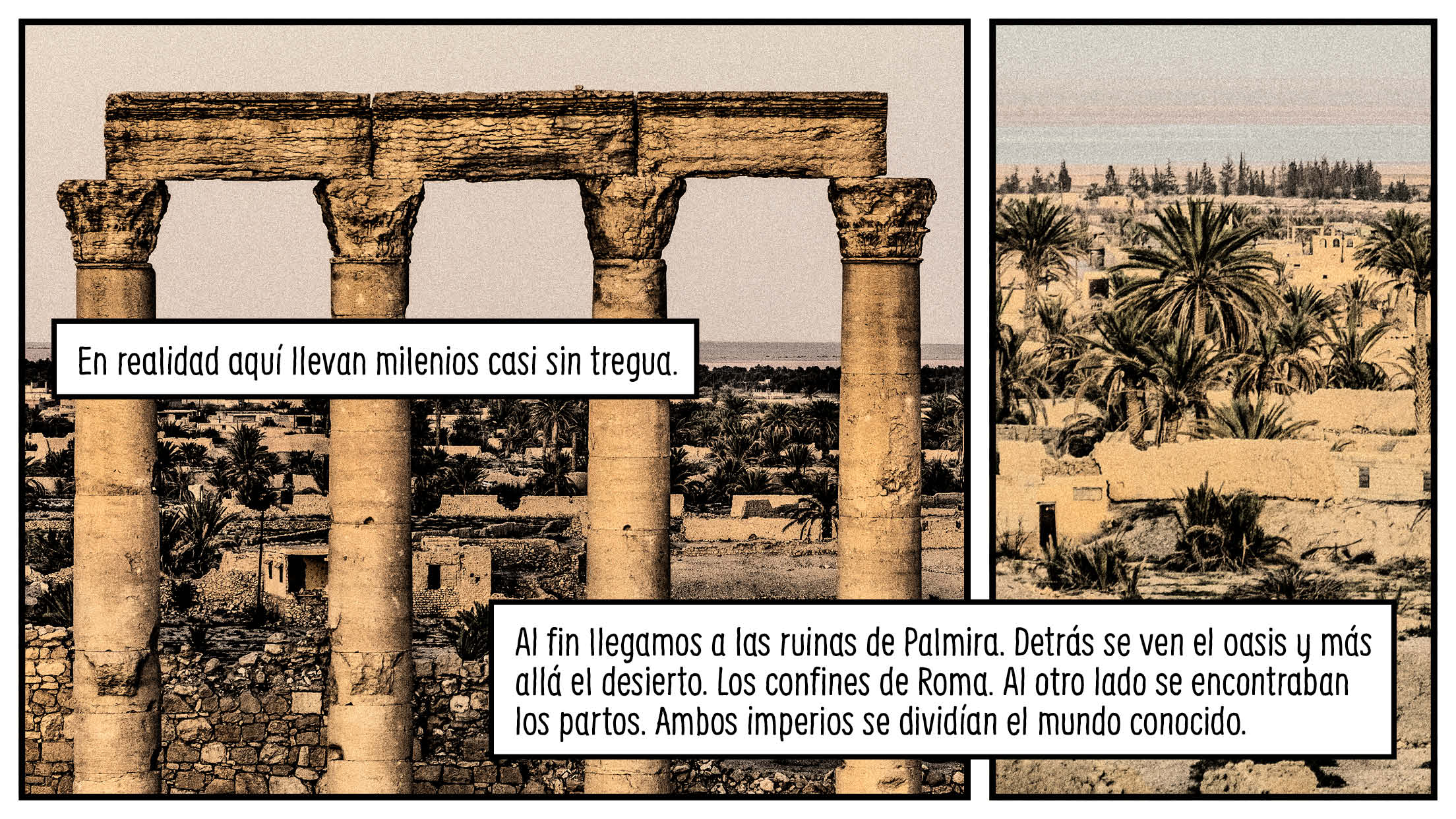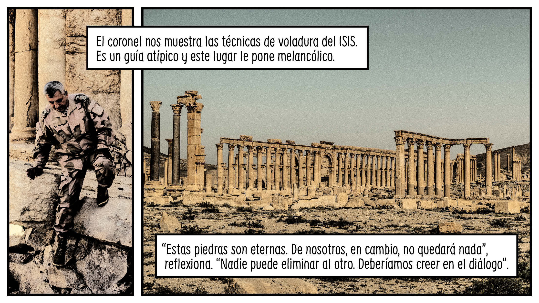 Tras siete años de guerra, 400.000 muertos y millones de refugiados, atravesamos Siria hasta las ruinas romanas de Palmira. ‘El País Semanal’ y ‘Süddeutsche Zeitung Magazin’ publican simultáneamente un proyecto que ha llevado a dos periodistas hasta un enclave arqueológico único, símbolo del encuentro entre Oriente y Occidente.