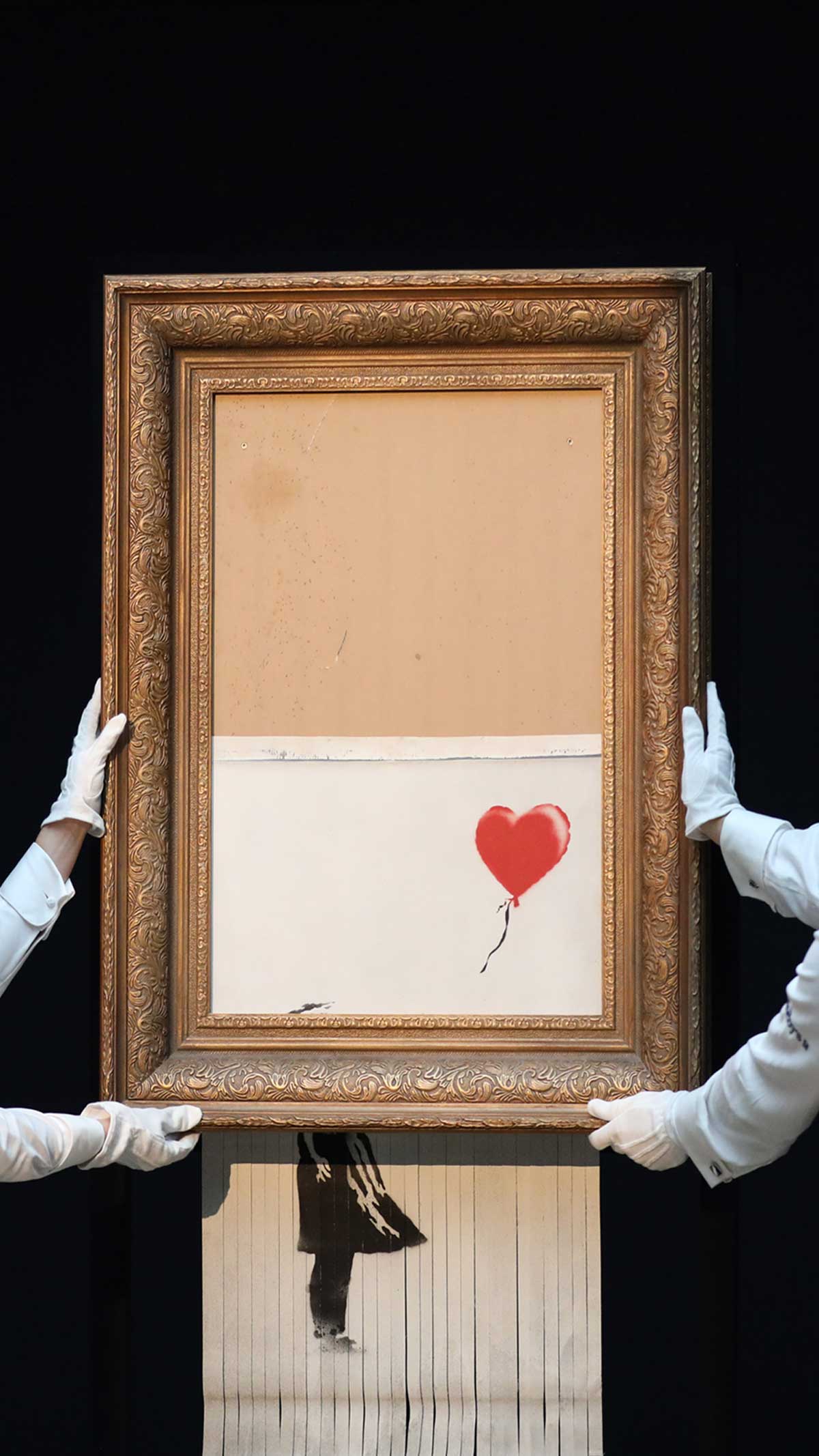 El autosabotaje de Bansky en la subasta de una de sus obras pone los focos sobre el mercado del arte y a la vez cuadruplica el precio del lienzo triturado.