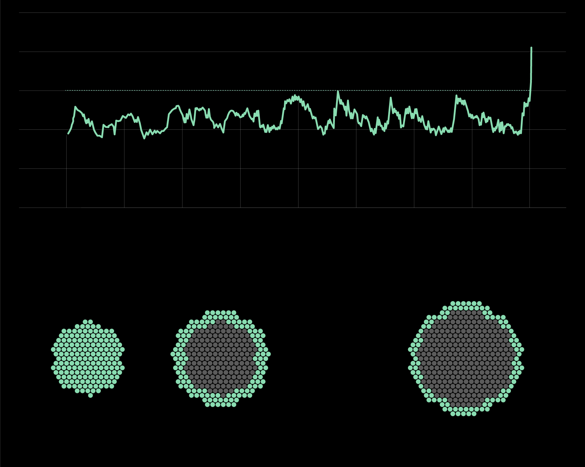 Los datos de la evolución de las concentraciones de dióxido de carbono en la atmósfera a lo largo de la historia se han tomado de la NASA y del NOAA. ¿Por qué se remontan exactamente 800.000 años y cómo son los científicos capaces de obtener información de tanto tiempo atrás? Porque las sucesivas capas de hielo que se han ido formando en la Antártida y en Groenlandia, año tras año a lo largo del tiempo, comprimida nevada tras nevada, han conservado en su interior burbujas de aire de todas las épocas, lo que permite estimar, por ejemplo, la concentración de dióxido de carbono en la atmósfera en cada momento de la historia. Y el registro más antiguo hallado hasta ahora —los científicos van perforando cada vez más profundo en busca del hielo más añejo— es de hace 800.000 años.
