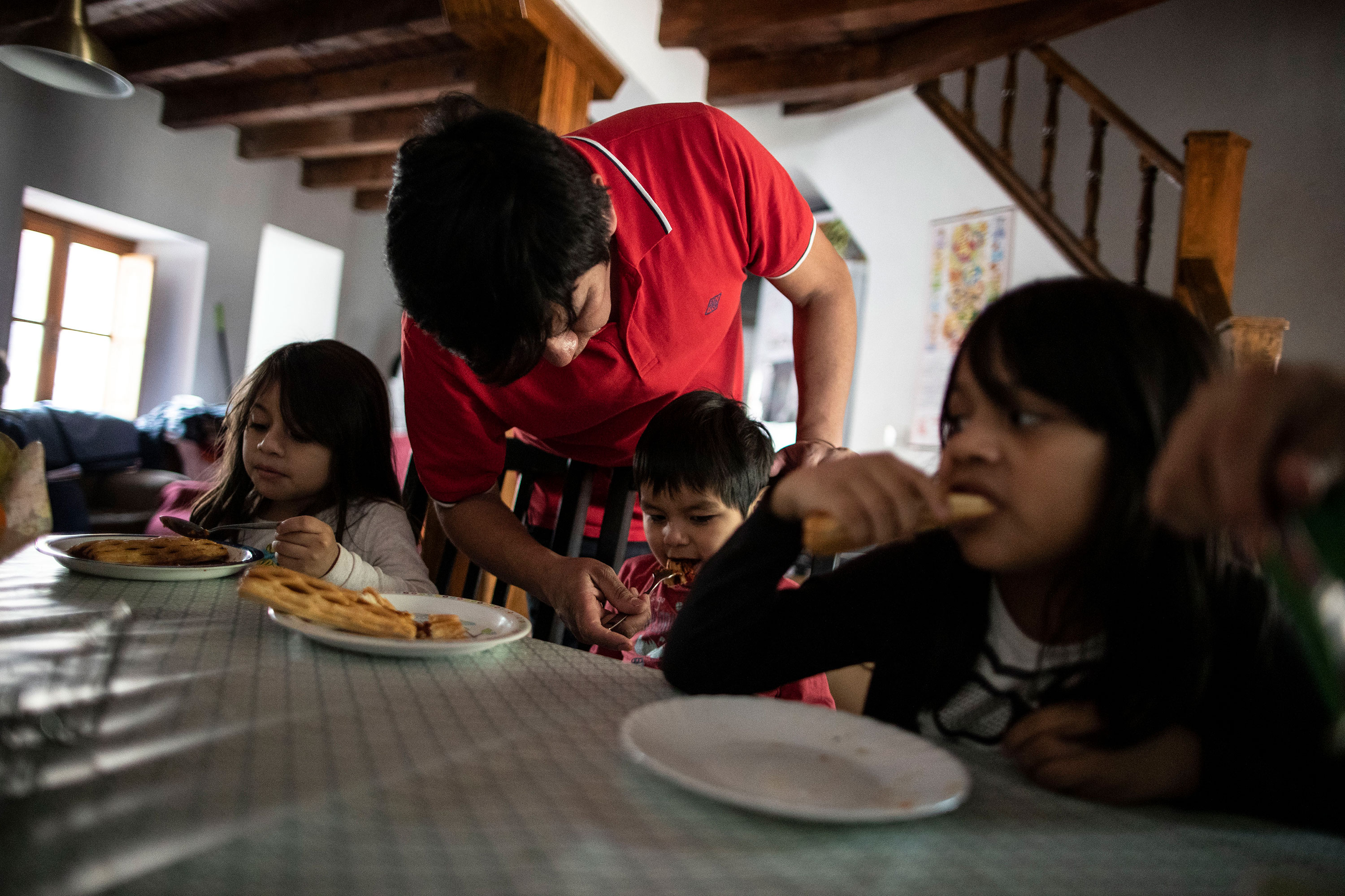 Mientras la casa guarda silencio después de la comida, con los niños relajados viendo la televisión o el móvil, Rosmery piensa en voz alta: “Una cosa de esto es que no dejas de pensar. Y te duele la cabeza. Tengo que dejar de pensar porque necesito estar bien. Tengo que cuidar de mis hijos”.
