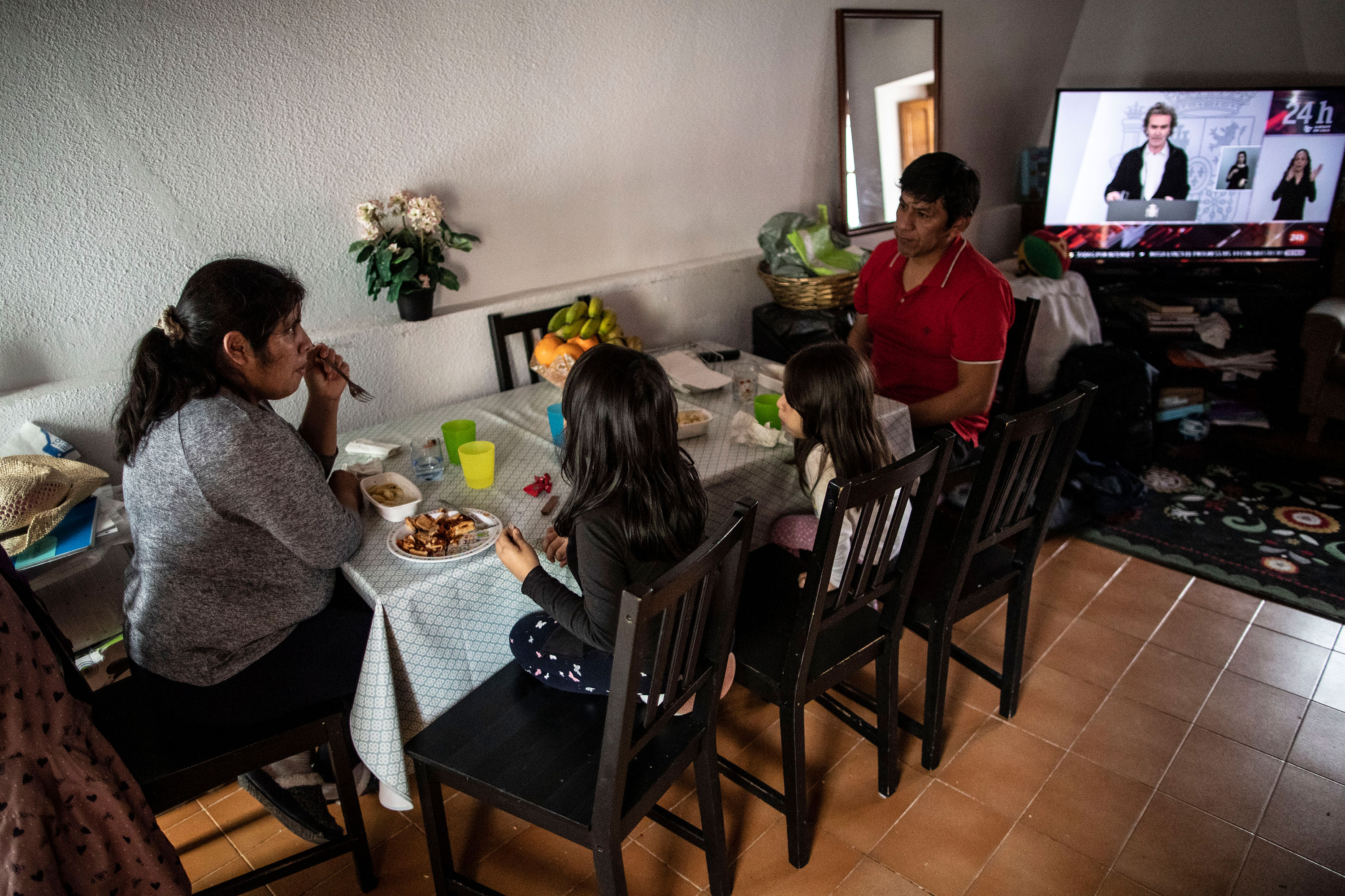 “Yo no me imaginaba esto”, dice Rosmery. “Siempre me las arreglé. Hemos pasado algunas dificultades, pero siempre teníamos soluciones. Nunca pedimos ayuda. Ahora no vemos salida. Jamás pensé que podía acabar en esta situación”. Cuando el sol cae, la familia se reúne frente a la televisión. En un programa cuentan, divertidos, que un popular modelo se ha quejado en redes sociales porque una tortilla que encargó a domicilio tardó más de la cuenta. Si uno se fija en los ojos de Rosmery ve que no está mirando la pantalla. Sigue pensando.