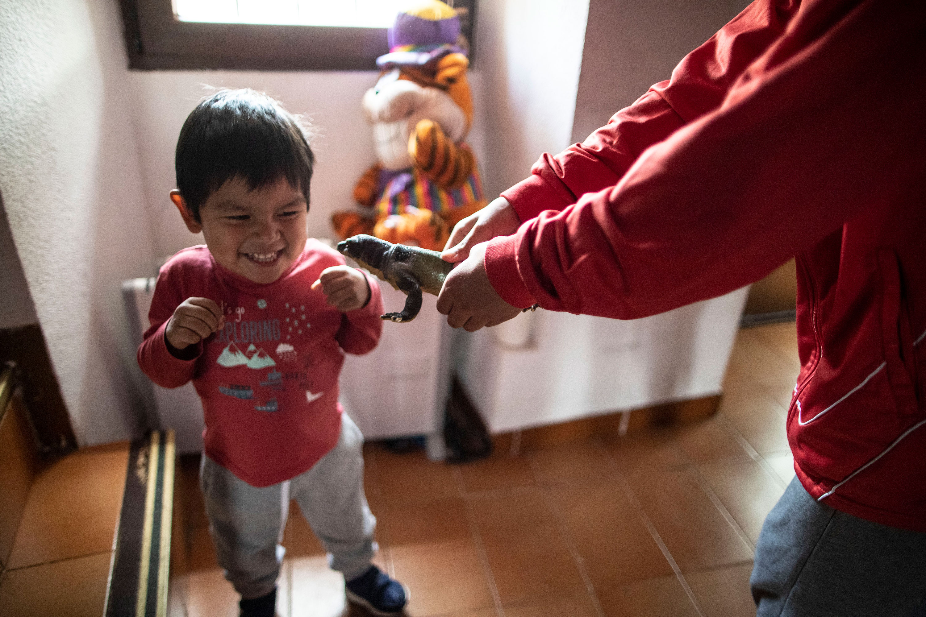Los niños pasaron semanas sin salir de casa desde que comenzó el estado de alarma. Los pequeños juegan y enseñan sus juguetes. “Afuera está el coronavirus y te manchas”, dice Lucía, de cinco años.