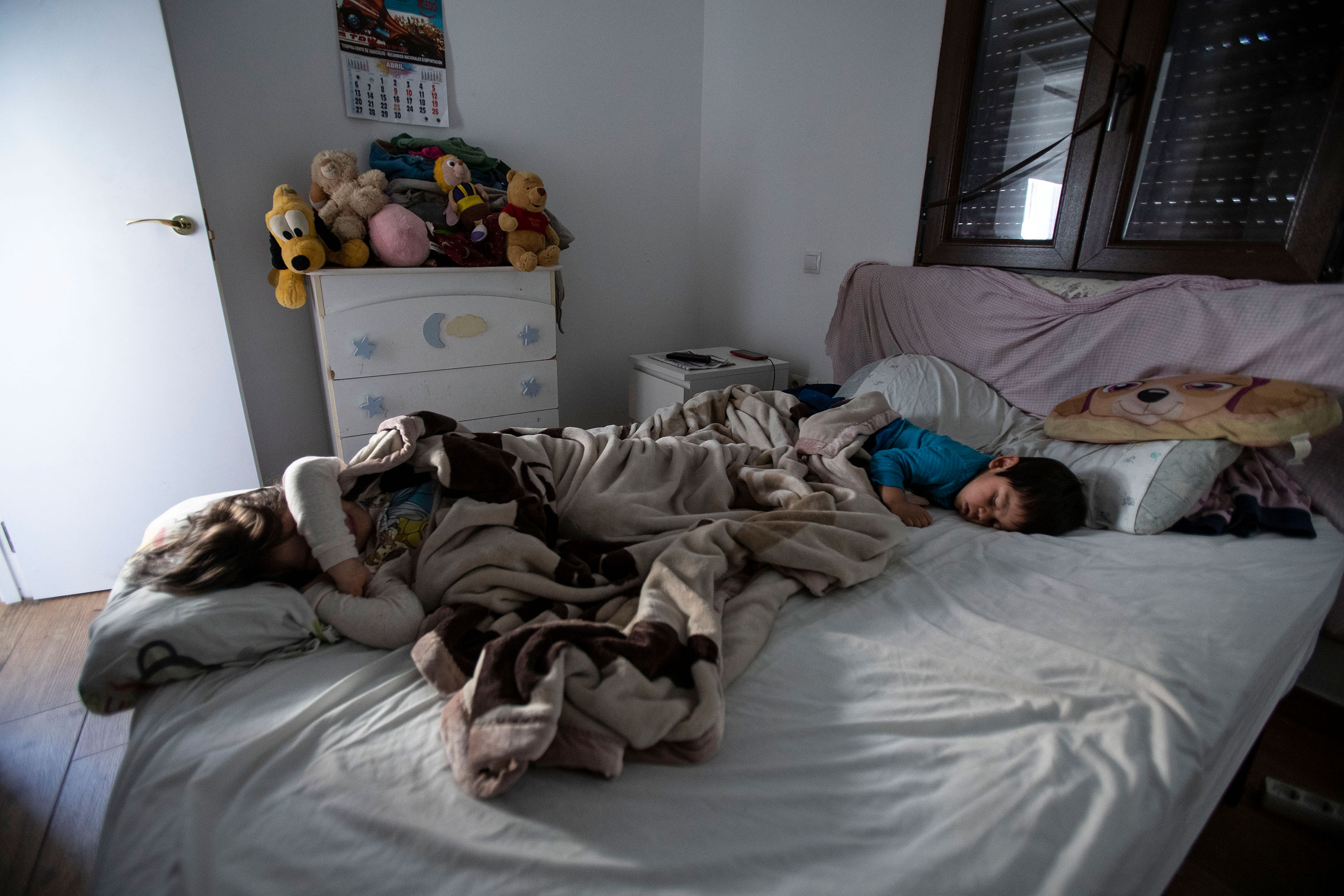 Rosmery Areste y Edwin Tarasana, peruanos, se instalaron hace unos meses en Navalagamella, un pueblo de 2.000 habitantes a 55 kilómetros de Madrid con mucha población migrante. Con ellos, sus cuatro hijos: Diego, de 12 años, Carolina, de seis, Lucía, de cinco y Tiago, que acaba de cumplir dos. Cristina, hija de una relación anterior de Edwin, también vive con ellos junto a su pequeño Allen, de dos años, que padece síndrome de West. Se reparten en tres habitaciones para dormir.