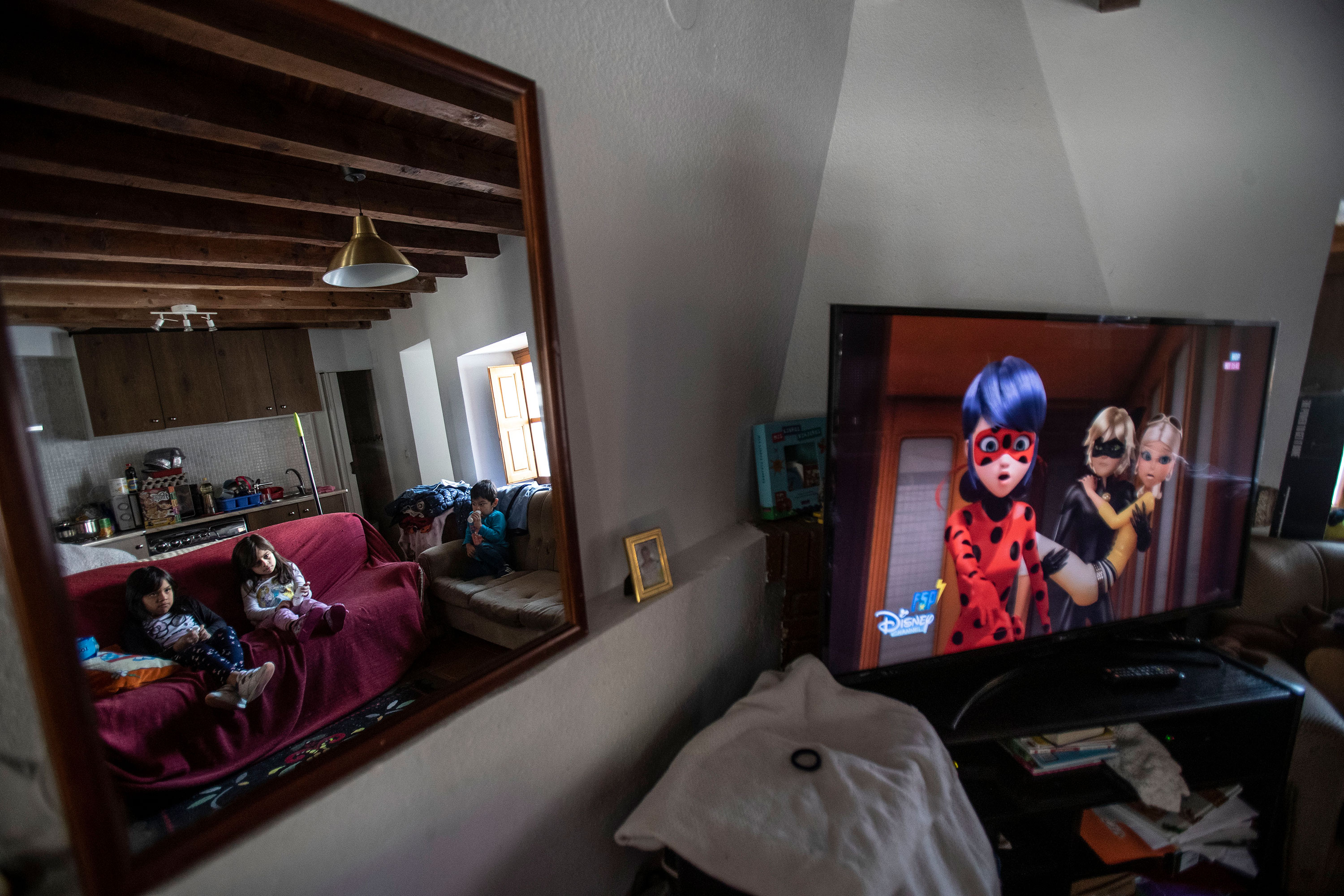 Una gran televisión siempre encendida es el núcleo de la casa. Más todavía cuando se sale poco y la convivencia de ocho personas es impuesta e inevitable. Mientras se preparan comidas, se hace limpieza o se recoge la ropa, la pantalla mantiene relajados a los pequeños durante la mañana.