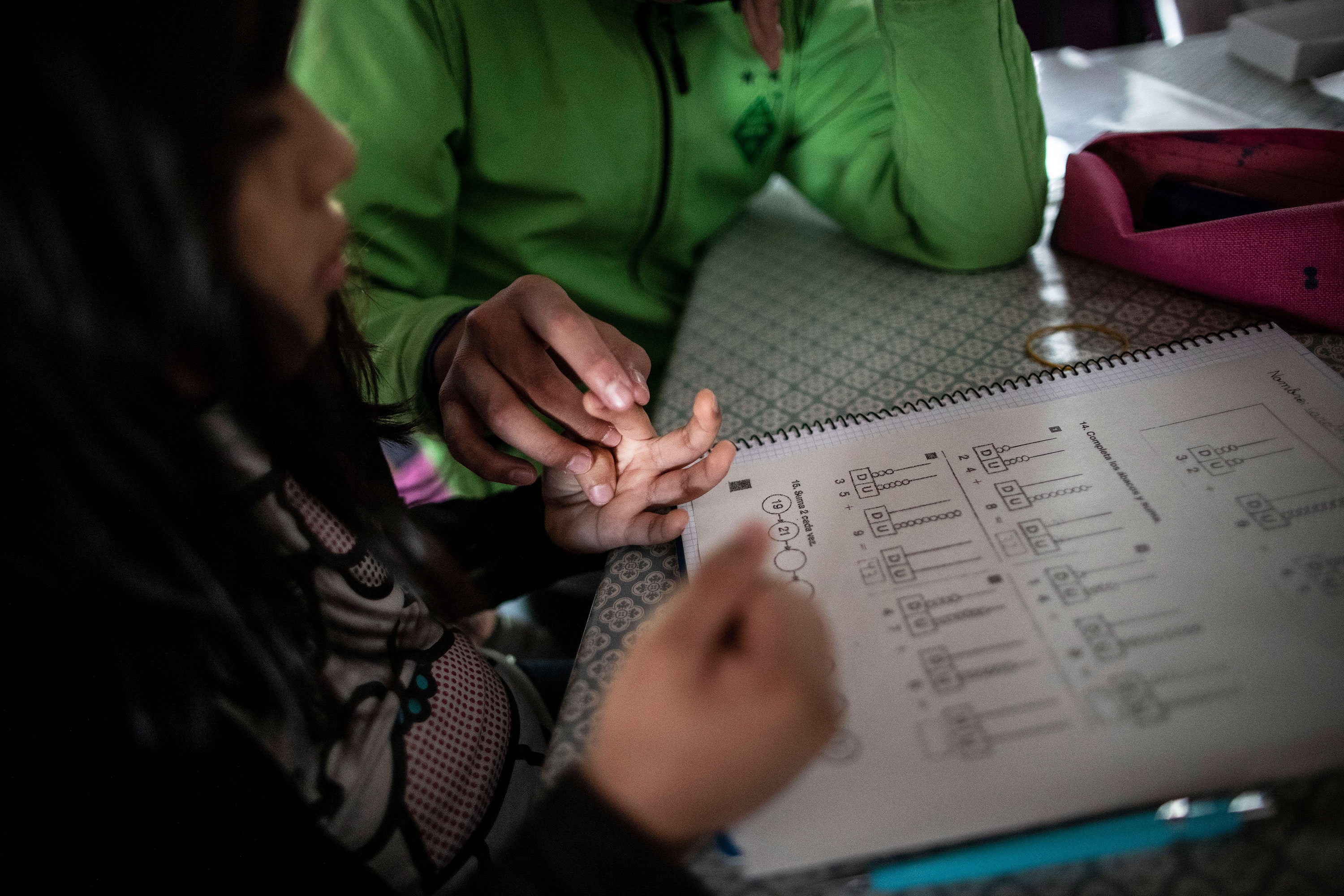 El colegio de Diego y Carolina les ha dado una tablet, pero es difícil hacer los deberes con ella y cada semana el centro les envía las tareas impresas. “Si tuviéramos ordenador sería más sencillo”, dice Rosmery. “Espero que esto no les perjudique cuando regresen a las clases. No quiero que se queden atrás”.