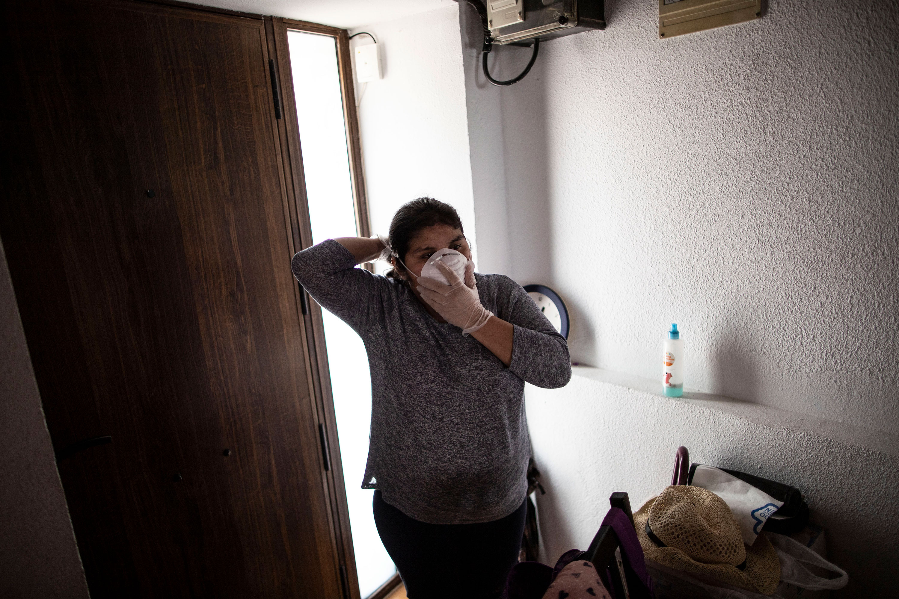 “Al principio pensé que iba a ser leve”, dice Edwin sobre la pandemia. Acaban de aprobar un ERTE en su empresa y todavía no ha cobrado nada. Rosmery fue despedida el primer día de confinamiento. En abril se encontraron con un problema: no entraba un solo euro en casa. Con ocho bocas que alimentar, tuvieron, por primera vez en su vida, que pedir ayuda. A mediodía se prepara con una mascarilla para ir a recoger la comida.