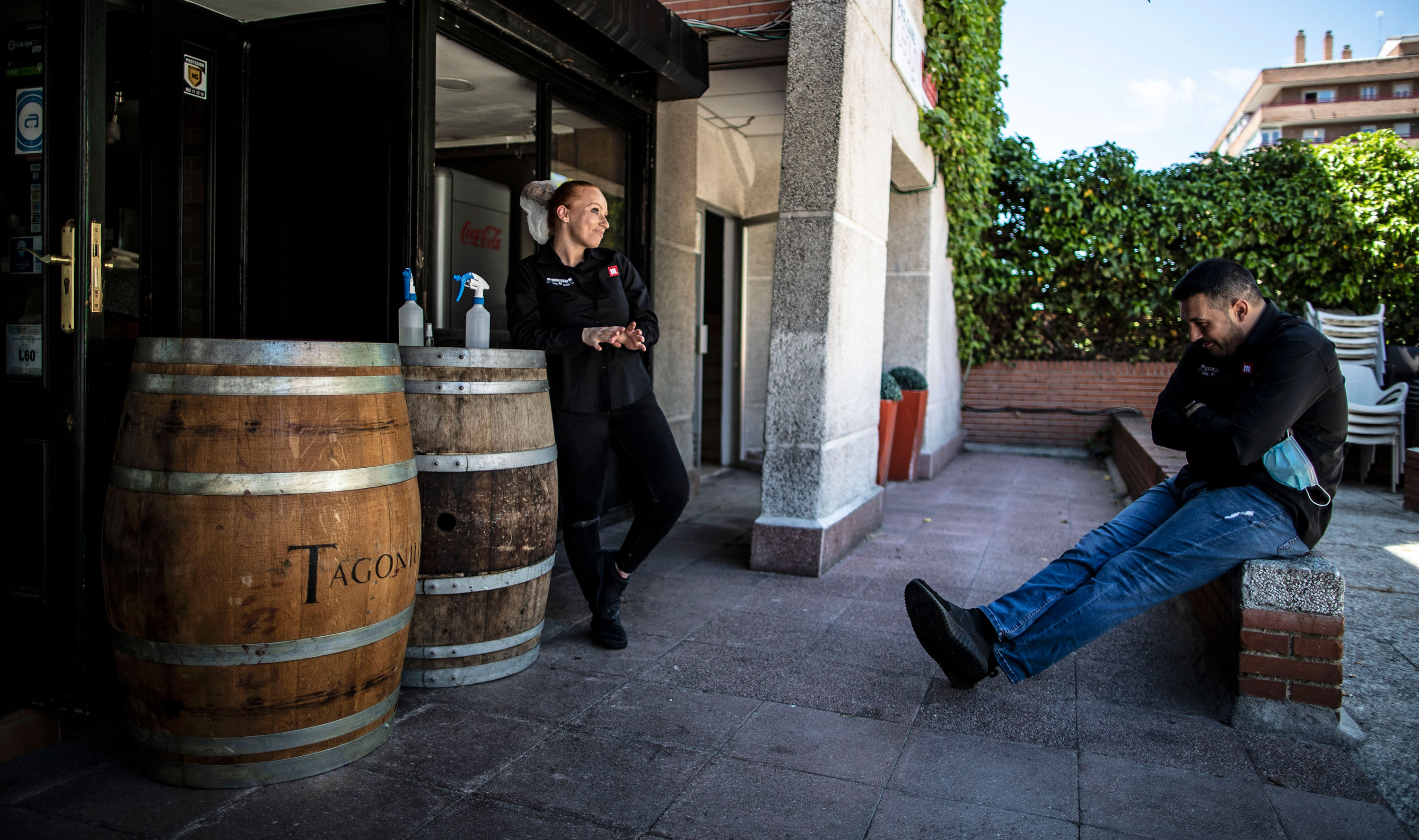 La noticia cayó como un jarro de agua fría. Marcos del Estal y Diana Andrei escucharon al presidente del Gobierno anunciar el estado de alarma junto a unos clientes pegados al televisor de la terraza del restaurante que regentan en Madrid. Un aparato que lleva ocho semanas cogiendo polvo en el interior del local. “Yo no entendía nada. Solo que al día siguiente no abriríamos”, recuerda la cocinera de 28 años. La noche del 13 de marzo repartieron los ingredientes perecederos y se encerraron en casa con miedo y sin saber que no volverían a encender los fogones hasta 56 días después. Como tampoco imaginaron que las pérdidas superarían los 30.000 euros en los primeros dos meses.