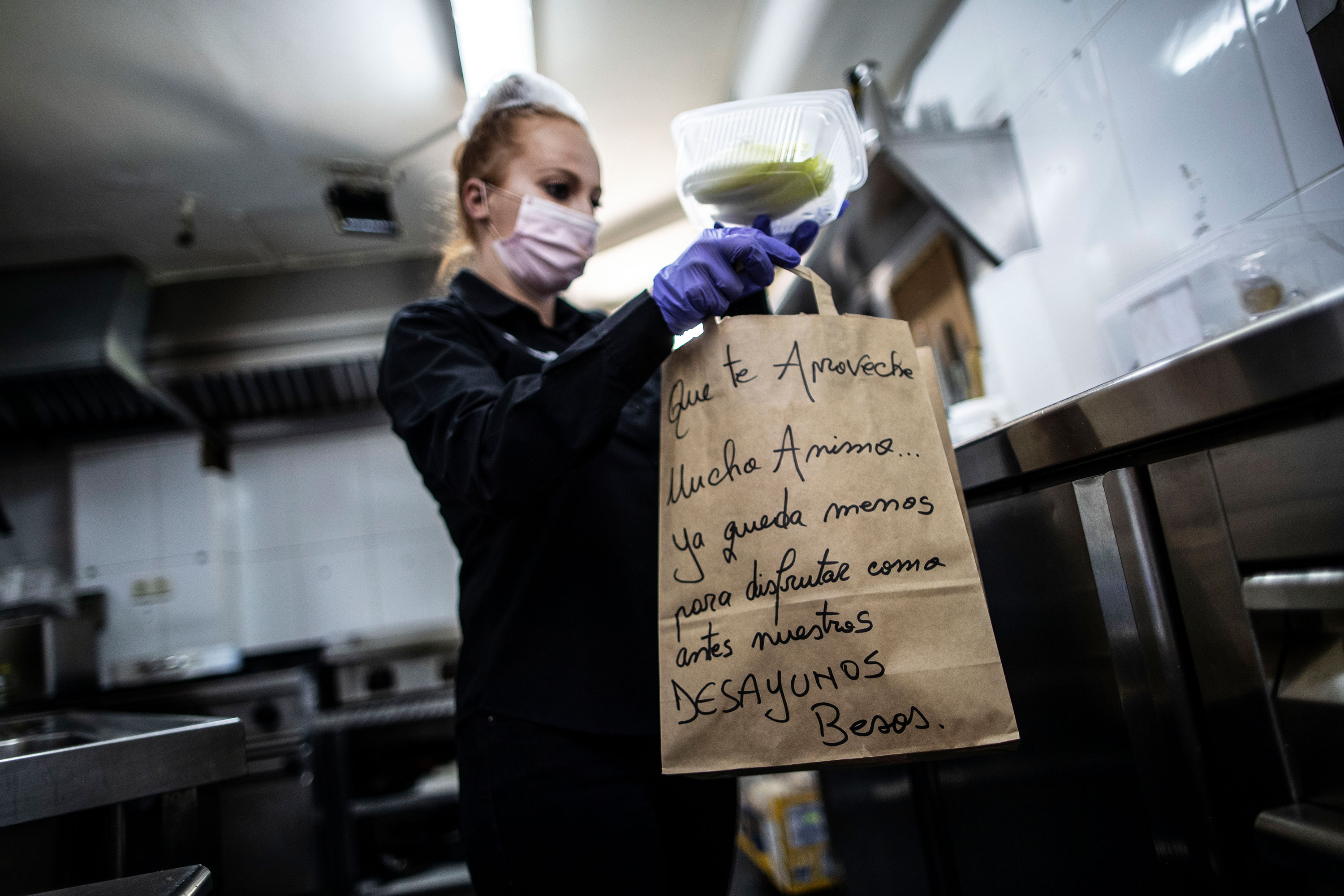 Diana es el alma del bar. La que adaptó la carta para celíacos tras notar que muchos dejaban el aperitivo. La que recuerda de memoria cómo les gusta el café a unos y la carne a otros. La que estos días escribe a mano un mensaje positivo en las bolsas de los clientes. Y a la que hoy se le rayan los ojos al hacer las cuentas. “Echo mucho de menos la vida de antes”, confiesa la rumana afincada en Madrid hace 11 años.