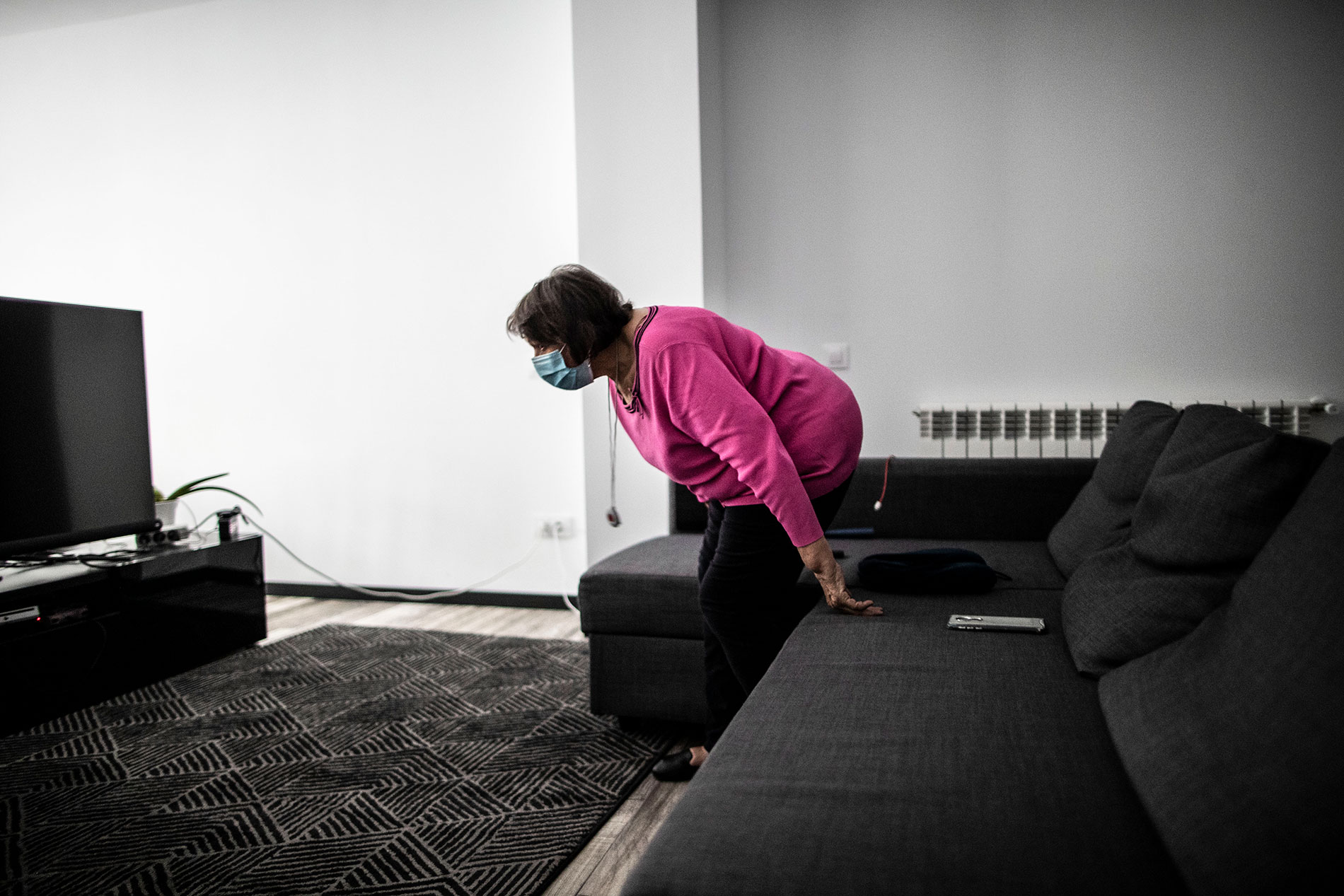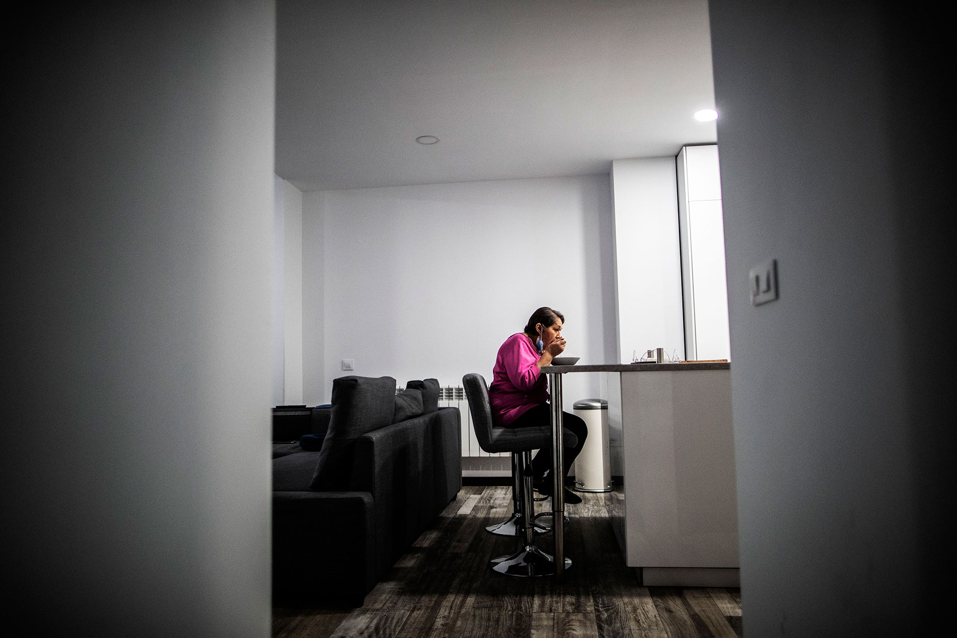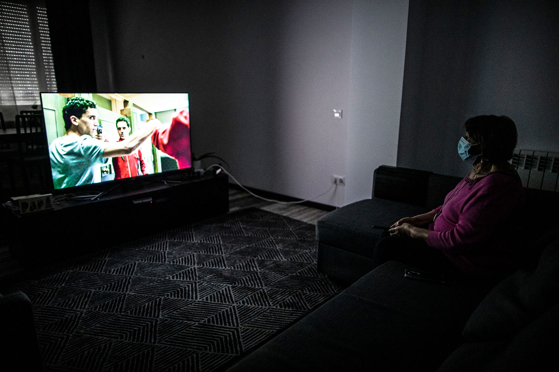 Se hace tarde y Chari tiene que volver con los suyos. Tras ayudarla a rellenar unos papeles del padrón, se despiden de codo a codo y prometen reencontrarse pronto. Cuando la puerta se cierra, vuelve el silencio. Aunque dura lo justo hasta alcanzar el mando de televisión. Están pendientes los últimos capítulos de la primera temporada de La casa de papel y aún le quedan horas al día. Se sienta con cuidado en el sofá y sube el volumen. “Esta no es de mis favoritas, hablan demasiado. Es un poco lenta”, critica. Las preferidas de la cuarentena han sido: Vivir sin permiso y La Piloto. Aunque también acabó hace poco Ozark y la serie documental de Jeffrey Epstein. “Netflix ha sido compañero durante el coronavirus. Eso sin duda”, dice sin apartar los ojos de la pantalla.