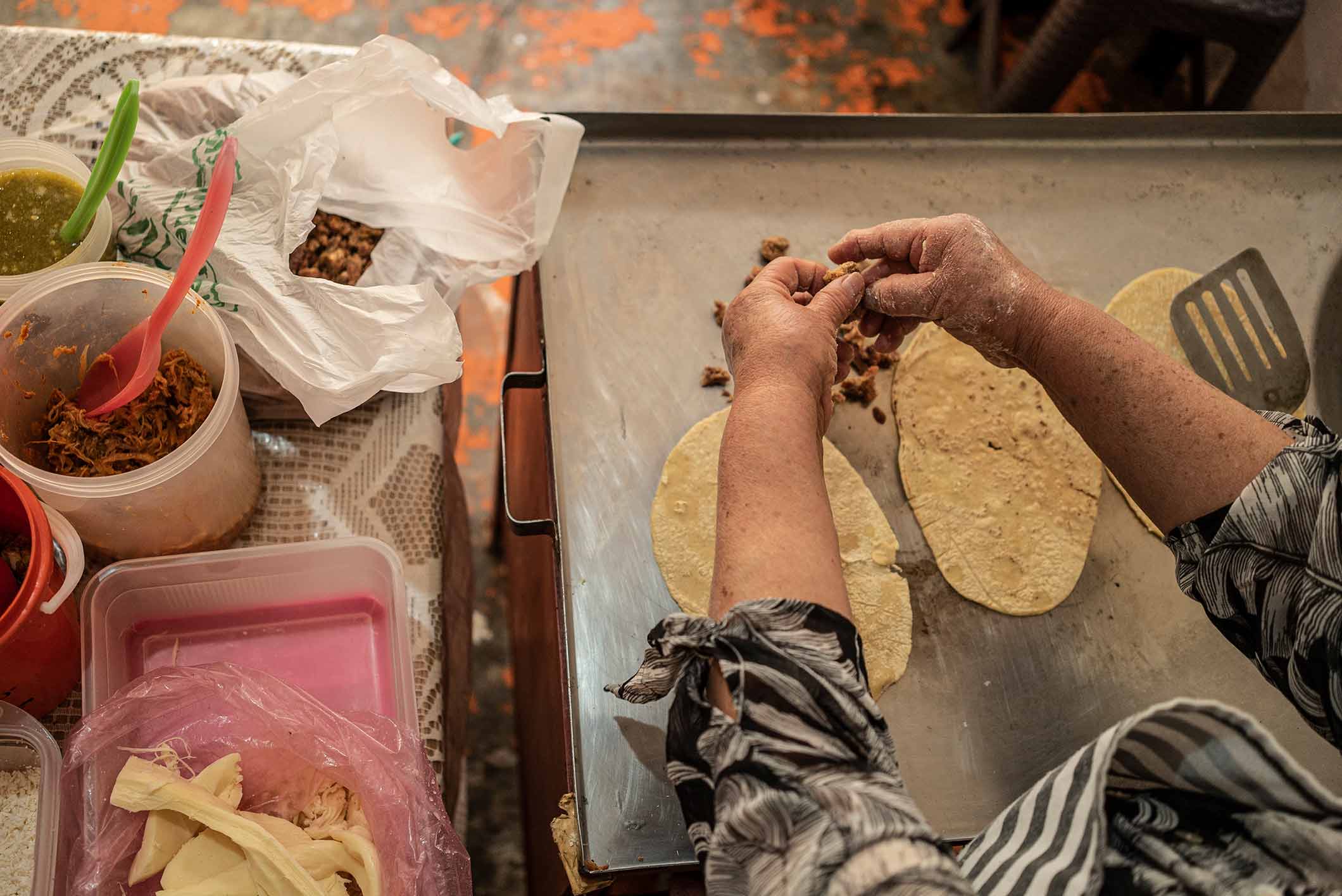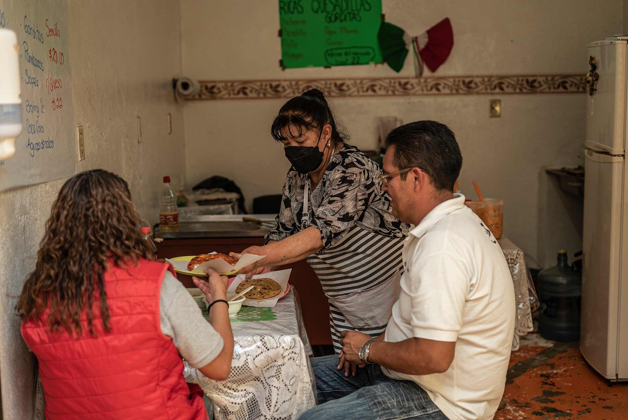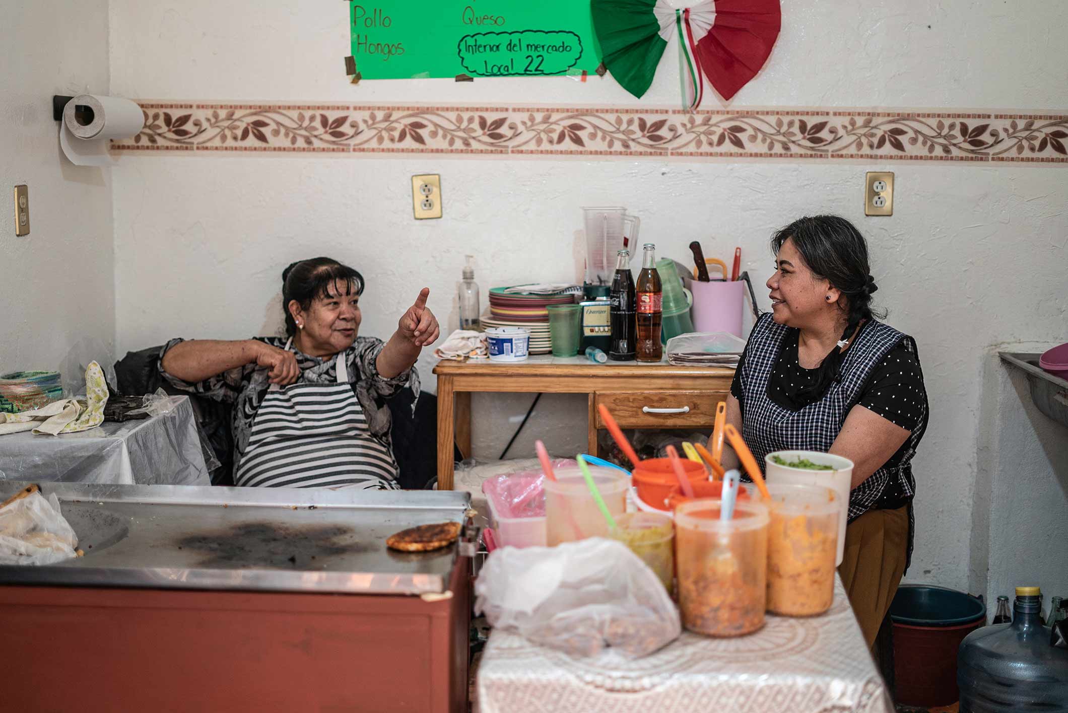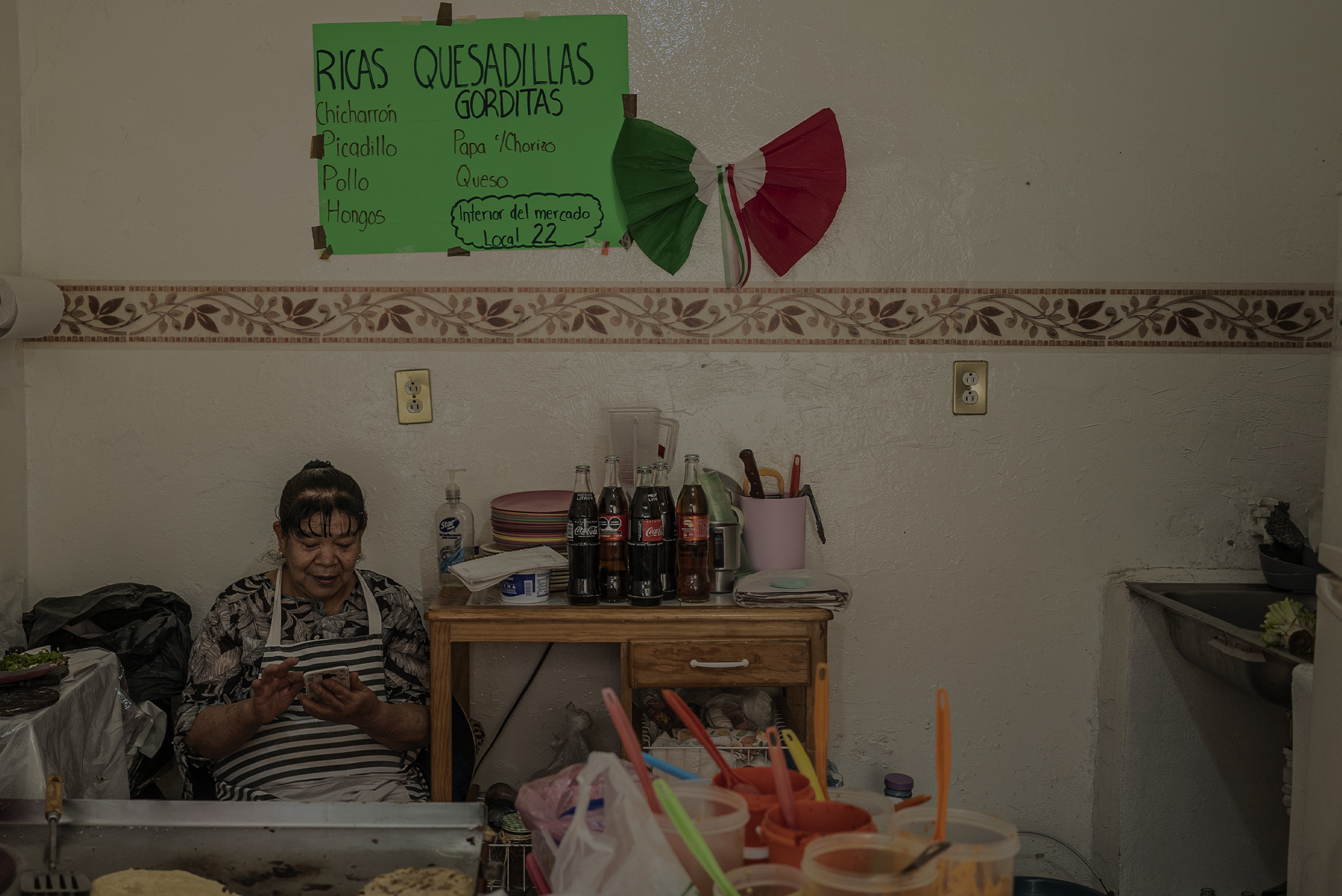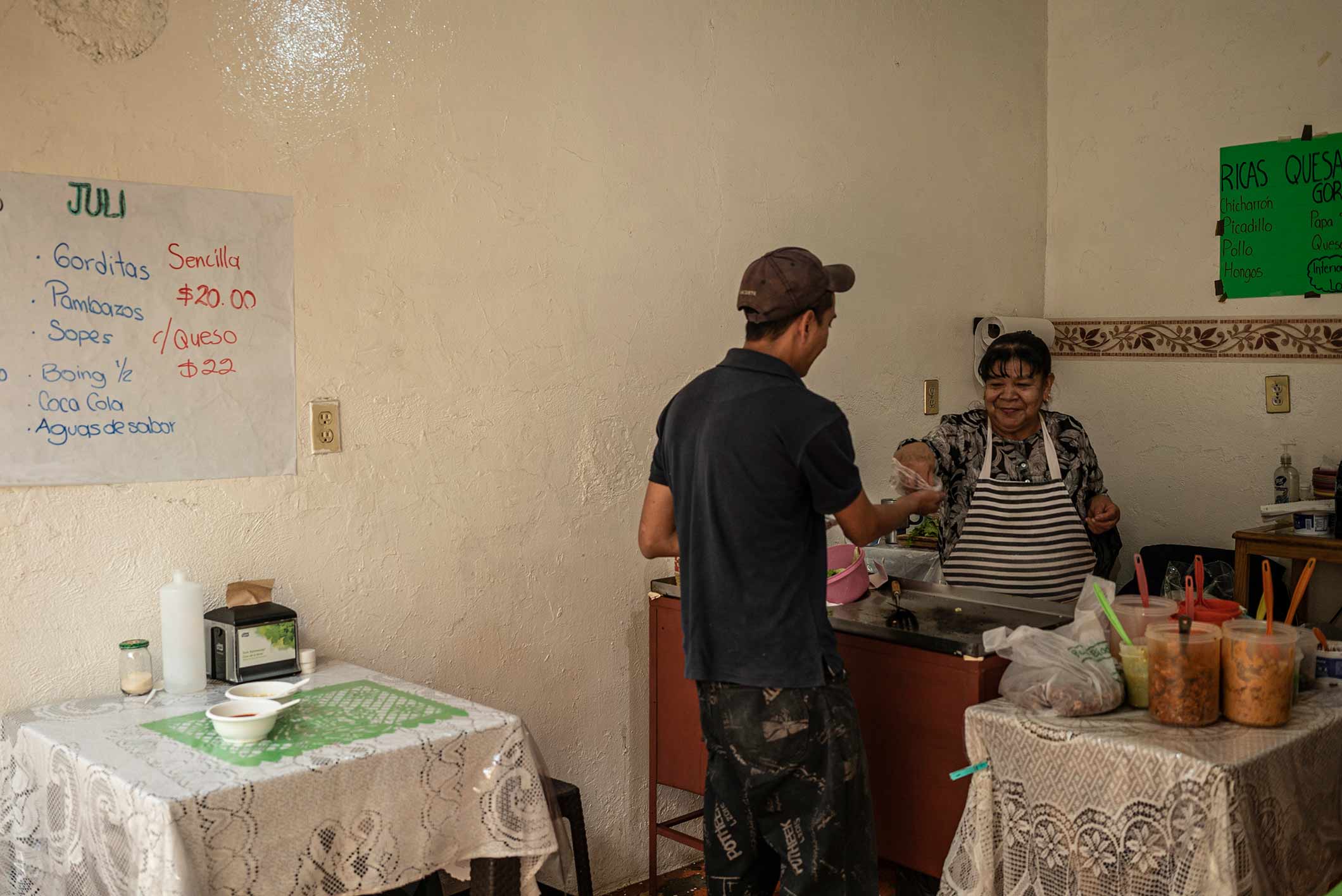 Desde hace 40 años, la señora Julia (como es conocida entre sus amigos y algunos de sus clientes) se dedica a preparar quesadillas. Abrió su propio puesto en la calle de Río Lerma, en la colonia Cuauhtémoc. En sus mejores años, la venta era más que sustancial; llegaba a tener hasta 30 clientes en fila. Sin embargo, en 2019, sus hijos le ofrecieron la oportunidad de abrir un local en el mercado Emiliano Zapata, a tan solo tres calles de su casa, en el municipio de Ecatepec. Ante sus dolencias físicas y las presiones de la alcaldía para reducir el número de puestos callejeros, ella aceptó.