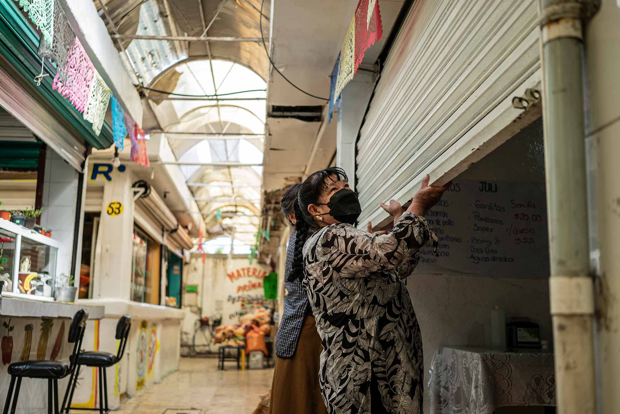 Antes de la pandemia de covid-19, el mercado Emiliano Zapata lucía lleno de vida. Tenía 56 locales: carnicerías, papelerías, peluquerías, mercerías y fondas, entre muchos otros tipos de negocios, ofrecían sus productos y servicios a los visitantes. Hoy, tan solo 36 locales han logrado reabrir. El resto, son algunos de los más de 1,6 millones de negocios que, según datos del Inegi, no han podido volver a levantar sus cortinas metálicas tras la emergencia sanitaria.