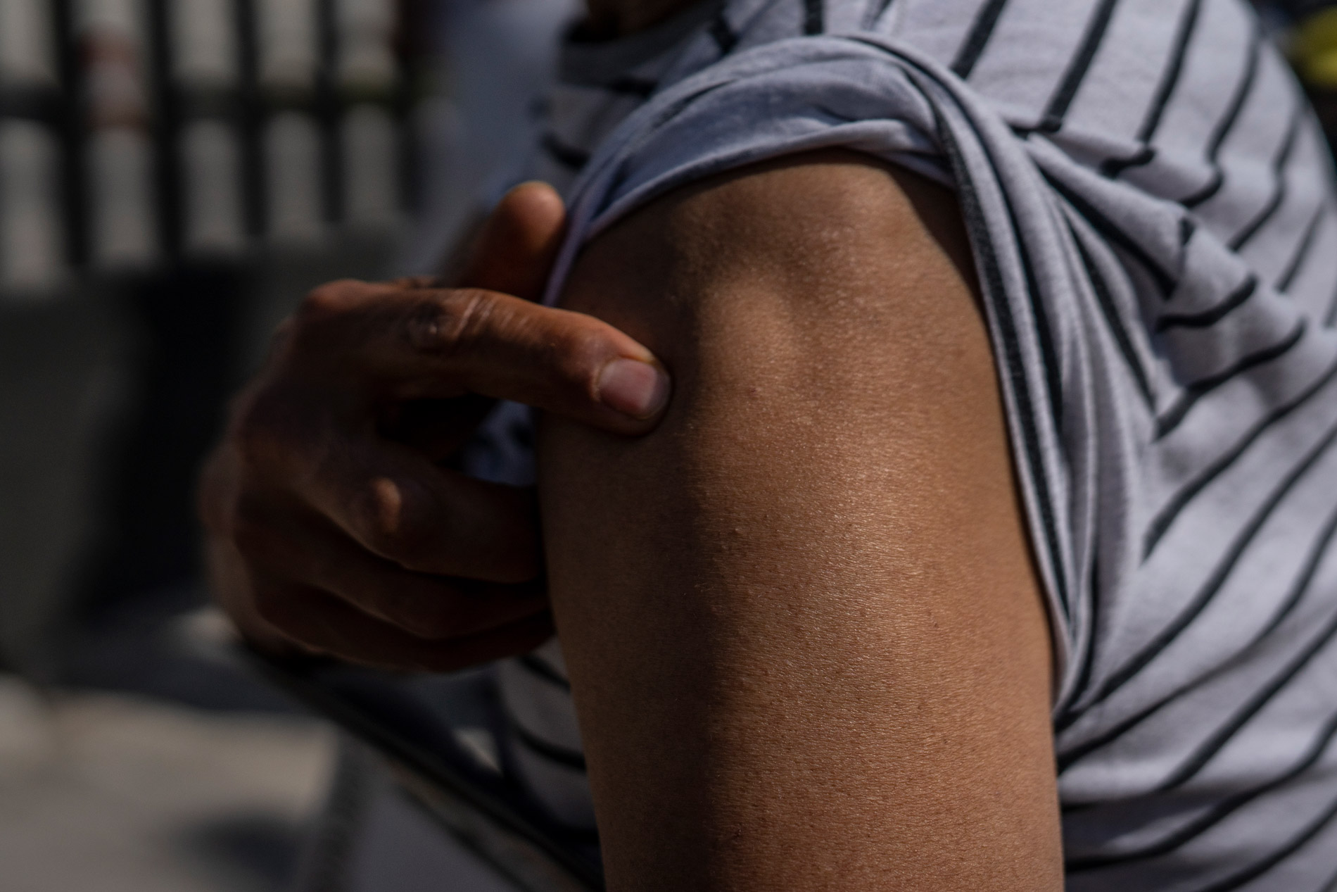 Le dieron una botella de agua y un dulce de amaranto mientras esperaba en observación, donde se encontró a su hermano Juan, de 65 años, a quien también vacunaron. “No me dolió nada, me siento como nuevo”, dice mientras señala el punto donde pasó la aguja.