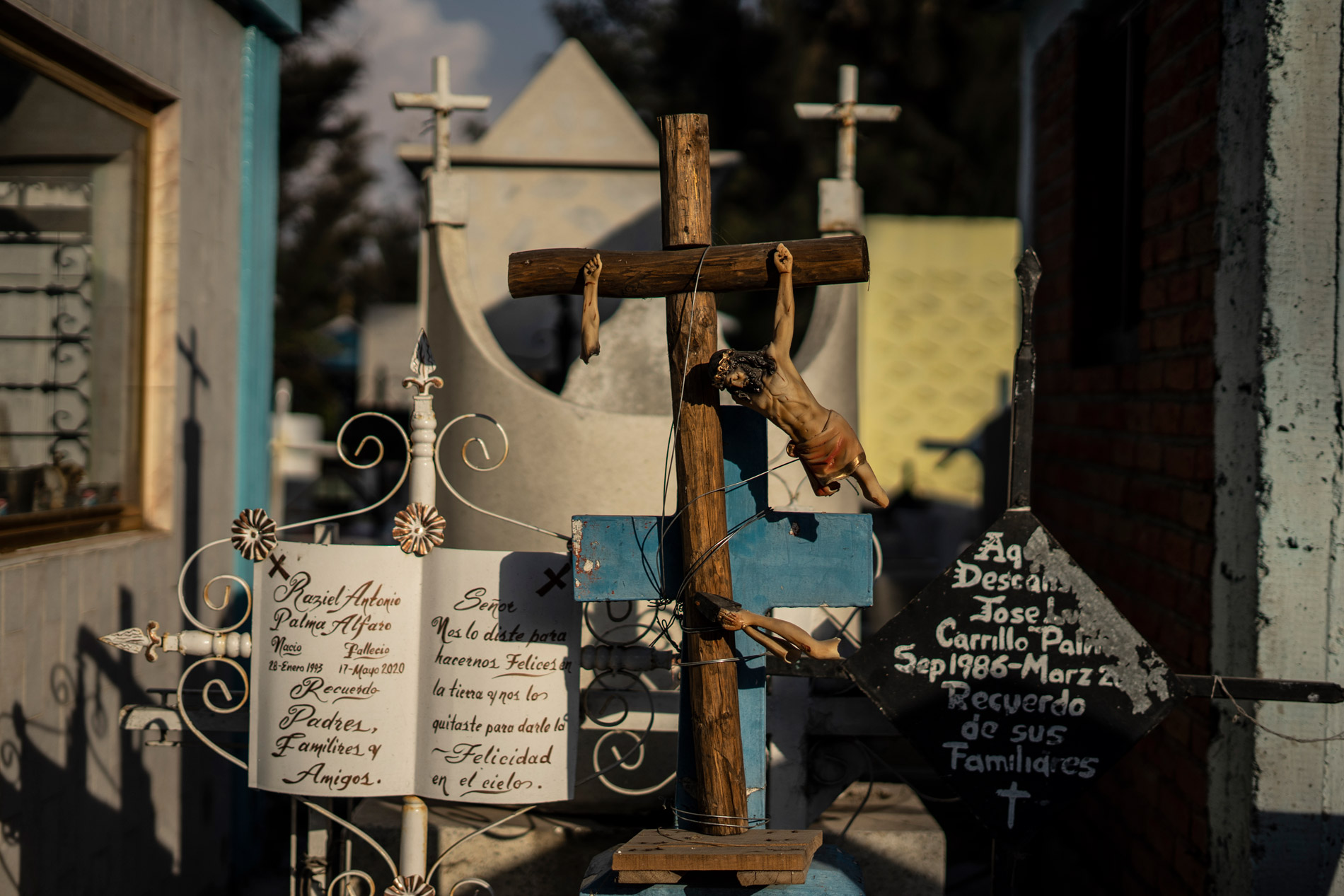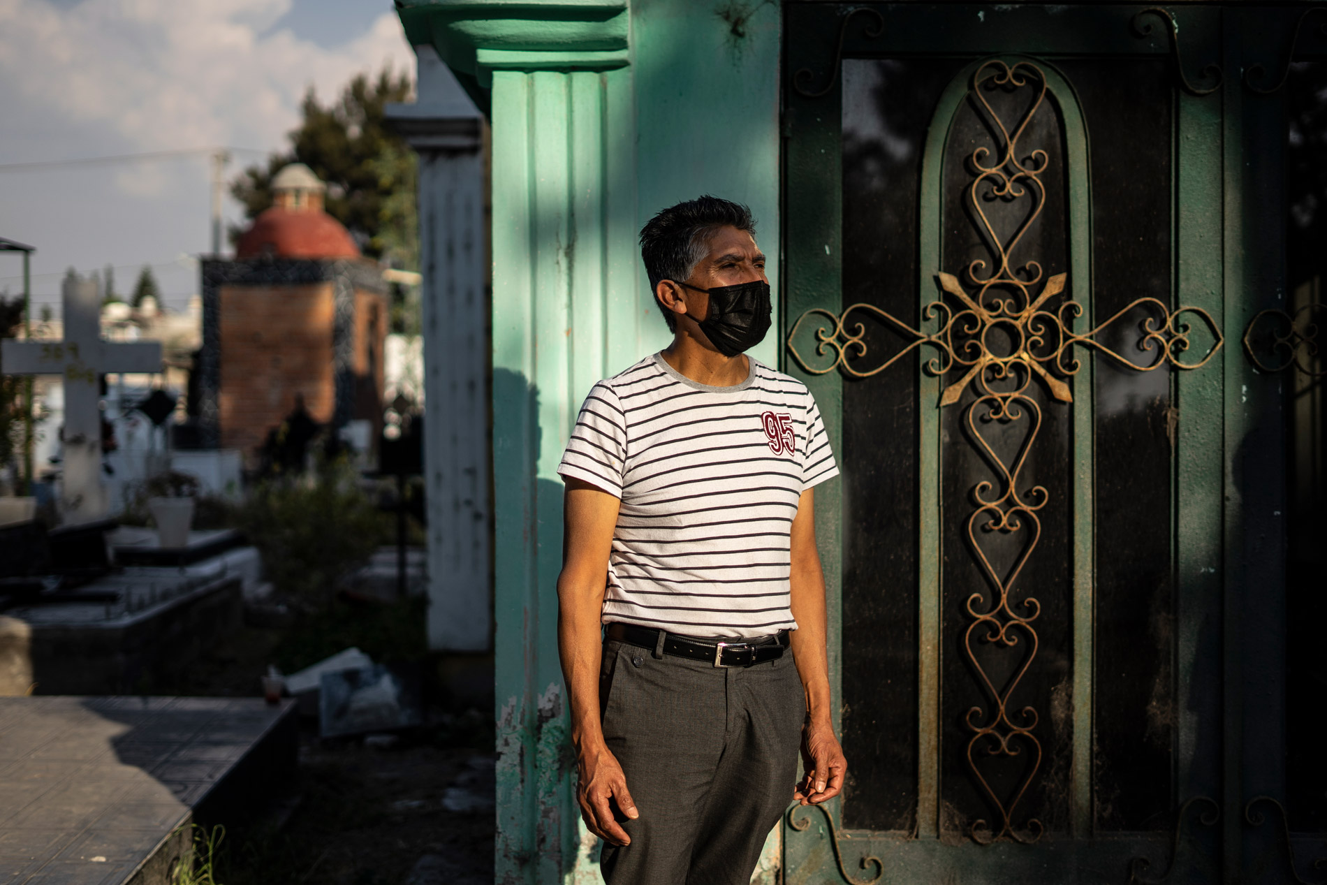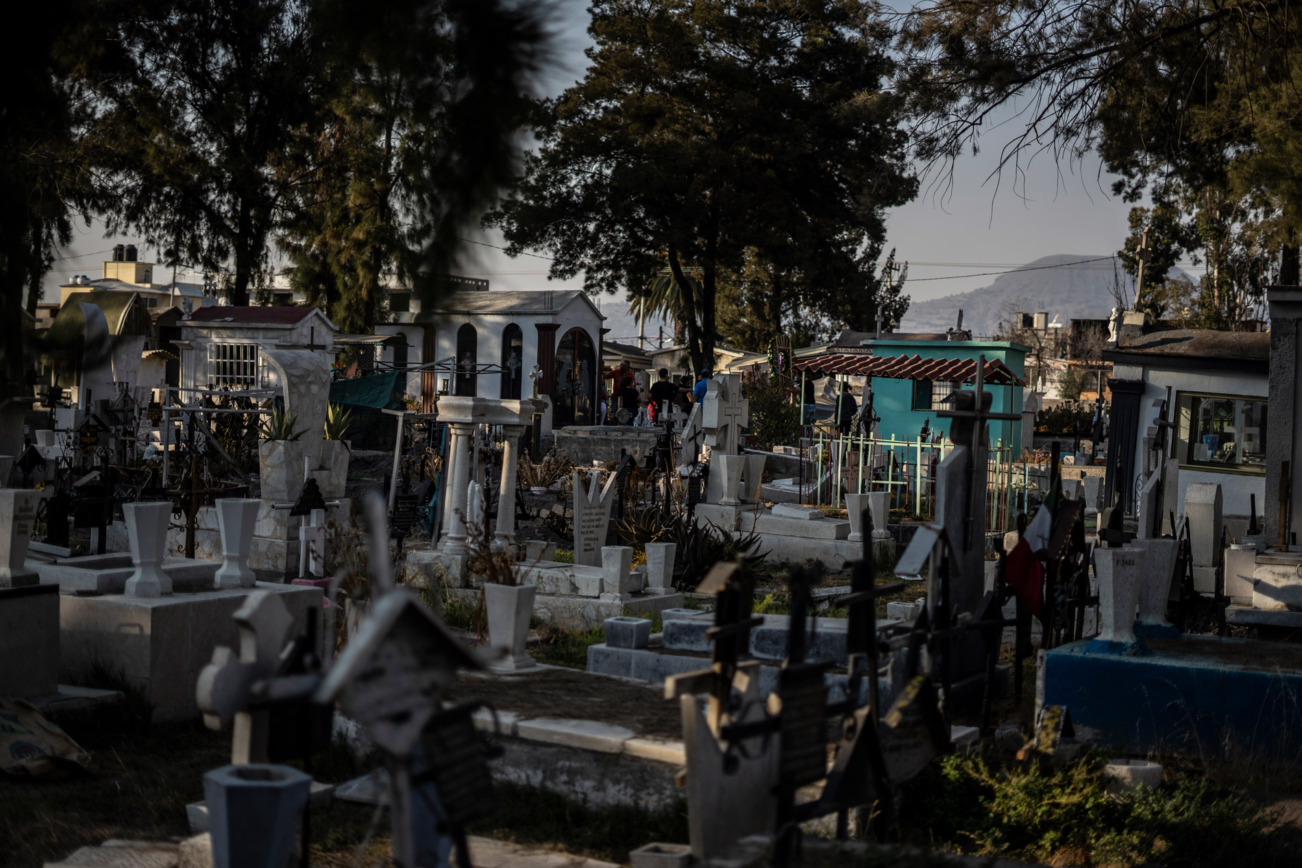 Don Rober, como le gusta que le llamen, solo tiene que asomarse a la entrada de su casa para ver el impacto que ha dejado la pandemia. Hace 10 minutos, una pequeña procesión de unas 20 personas pasó frente a su puerta y dobló a la derecha en la esquina, donde está el Panteón de Tláhuac, que encierra más de 80 años de historia en Ciudad de México. Nunca le importó vivir al lado de un cementerio. De niño jugaba a las escondidillas con sus amigos, corría entre las capillas y se ocultaba detrás de las tumbas.