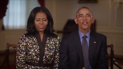 Durante la fiesta se proyectó un vídeo paródico en el que Michelle y Barack Obama, la reina de Inglaterra y el Papa les felicitan por haber llegado hasta aquí.