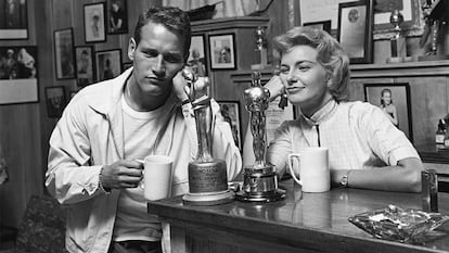 La serie documental The last movie stars (HBO) —aún no estrenada en España— dedica seis capítulos de una hora cada uno a contar la verdadera historia del hombre más guapo del mundo y la maravillosa actriz con la que compartió más de medio siglo. A través de un material inédito, más de cien entrevistas con la pareja, amigos y compañeros de profesión —Newman pretendía utilizarlas para escribir sus memorias—, además de charlas con hijos y nietos del matrimonio, el director, Ethan Hawke, consigue el más difícil todavía: engrandecer la leyenda. Y lo hace bajándolos a la tierra, mostrando que su relación no era perfecta —porque ninguna lo es—, humanizando a las últimas estrellas, como les llamaba su amigo Gore Vidal, escritor.