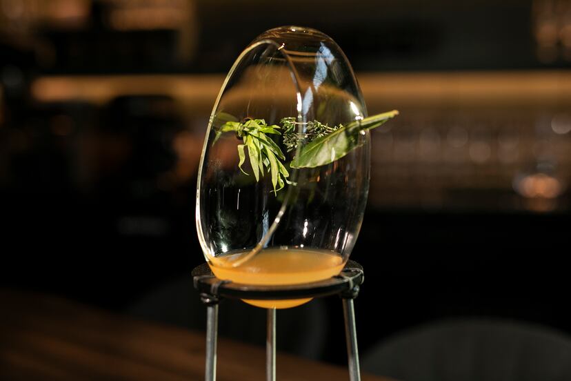 Y en este espacio diáfano, donde los bármanes y los visitantes se pueden llegar a confundir, se preparan bebidas sorprendentes que llegan a la mesa con recipientes extraordinarios. Krypta es, seguramente, el más envolvente. Se trata de un cóctel de kiwi clarificado, hierbas aromáticas, ginebra Sipsmith y brandy Fundador Sherry Cask de Solera. Pocos sabores que se degustan con una carcasa de cristal con cámara olfativa. Un recipiente que permite beber y oler el cóctel prácticamente al mismo nivel, generando una experiencia totalmente absorbente.