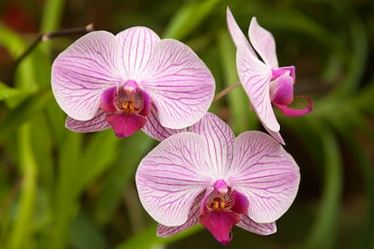 Las personas amantes de las orquídeas mariposa (Phalaenopsis cv.) habrán visto que, a veces, el envés de las hojas de su planta se llena con unas gotas transparentes y de consistencia espesa. Se podrían achacar a la melaza —el líquido dulce que segregan insectos parásitos como los pulgones o las cochinillas—, pero en realidad es un fluido que produce la propia orquídea, y que en inglés recibe el divertido nombre de happy sap (savia feliz). Esta “savia” se origina en plantas que se encuentran fuertes y que cuentan con un balance apropiado de agua y de nutrientes, si bien es cierto que muchos cultivadores suelen limpiarla con un paño mojado en agua caliente, para evitar ese tacto pegajoso.