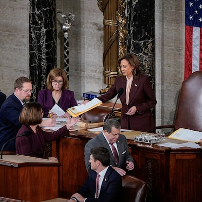 Esta vez no hubo violencia: durante la sesión, presidida por la vicepresidenta Kamala Harris, la candidata demócrata que perdió las elecciones, se han computado los votos.