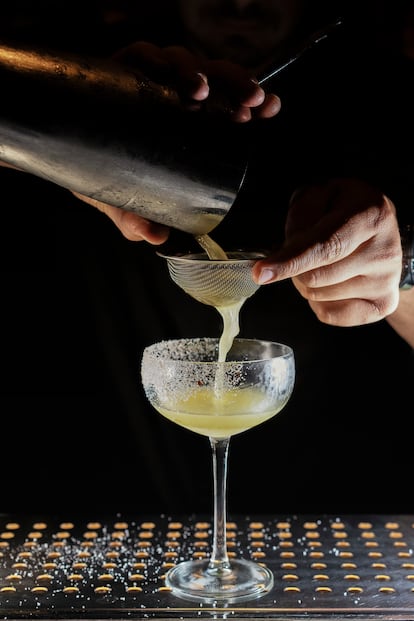 Para ello han conseguido crear sus propias versiones. Por ejemplo, girando el popular New york sour —clásico moderno que evoluciona un whisky sour con un colorido top de vino tinto— a un cóctel con vino mallorquín y tequila, o apropiándose de best sellers como una Paloma —versión tropical de nuestro gin tonic, con tequila, soda de pomelo y limón—, de la que ofrecen hasta seis revisiones diferentes. “Queremos que la gente se sienta a gusto con nuestros cócteles y pueda disfrutarlos sin pensar que son inaccesibles o una cosa rara”, apunta Tandazo.