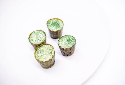 Su equipo está lleno de talento joven, como el del sub-chef João Costa, que desde los 18 años forma parte de la plantilla de Euskalduna Studio y es uno de los miembros fundadores del restaurante. “Para ellos es mucho más fácil alcanzar lo que hicimos nosotros hace 15 años porque abren Instagram y tienen todas las recetas del mundo”, comenta Coelho con la mirada fija en los tres ayudantes que ha tenido esta noche. Para ellos también tiene consejos: “Les digo que un buen cocinero necesita comer en otros restaurantes y visitar otros países para entender cómo cocinan otras culturas. Puedes hacer una sopa coreana, pero si nunca has estado ahí, no sabes por qué la hacen ni por qué es tan importante para ellos”, sostiene Coelho, que en 2013 realizó un viaje por varios países de Europa y Asia que le llevó a trabajar en Viajante (Londres) y 2am: Dessert Bar (Singapur).