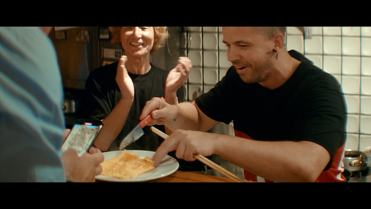El seguimiento duró desde el verano del 2022 al verano del 2024, y ante la cámara desfilan sus amigos, su psicóloga, sus horas de pádel, sus dudas y preocupaciones, los entresijos de su trabajo previo a las aperturas (StreetXO Madrid y Dubai, el goXO o Hungry Club en el aeropuerto de Barajas) y la relación con su familia, con la que comparte la última comida en Viridiana, el restaurante de su maestro Abraham García, que cerró el año pasado.