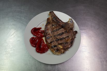 Más brindis económicos, el menú del día: por 15 euros tienes primero de cuchara, una ensalada o entremés mediante y luego chuleta o churrasco, la misma que de carta, aunque quizá un poco más pequeña porque es del lateral de la pieza, no el corte central, “pero la calidad es la misma”. Postre, café, agua, vino y gaseosa. “Antes comprábamos la ternera a nueve euros el kilo y ahora a 15, hay mucha demanda, pero no me gusta abusar del precio”, destaca López.