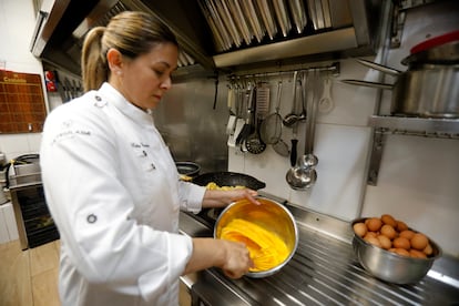 Antes de llegar a España y trabajar en la hostelería, Celia Correira (Ponta Porã, Brasil, 40 años) era secretaria del alcalde de su municipio. Viajó a Elche (Alicante) para visitar a su hermana, se enamoró y decidió quedarse. Tenía 20 años. Su primer empleo lo consiguió como ayudante de cocina en un bar de tapas de la ciudad ilicitana. “¿Sabes hacer tortilla?”, le preguntaron. No tenía ni idea. Recurrió entonces a un amigo para que le enseñara. “En aquella época no conocía otra tortilla que no fuera un ladrillo”, recuerda.