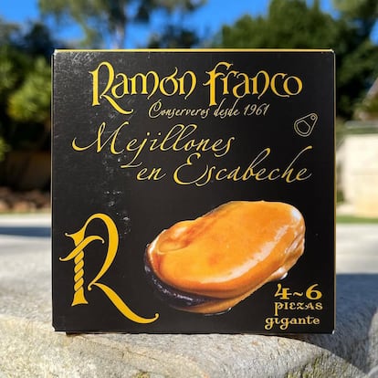 Hablar de mejillones buenos gallegos es hacerlo de Ramón Franco. Esta clásica conservera de A Pobra do Caramiñal es toda una leyenda en este mundillo. Tiene sus propias bateas y elige lo mejor de lo mejor para su propia producción. Clasicismo a raudales a la par que calidad, y de tanto en cuando enlata mejillones gigantes a razón de tres por lata (y también a precio de solomillo de oso panda). El buque insignia es el formato 4/6 (15,95 euros).