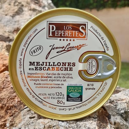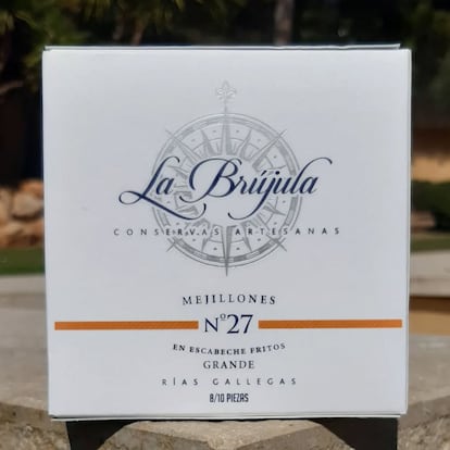 No muy lejos de aquí, entre Cambados y Ribadumia, encontramos La Brújula, otro tótem en lo que a meter bichos en lata se refiere. Esta conservera tiene unos mejillones magníficos junto a su melliza Ramón Peña (lo de los nombres y apellidos de las conserveras es un poco como los Buendía de Cien años de soledad, necesitas un árbol genealógico para no perderte). Mejillones de formato grande con uno de los sabores de escabeche más naturales y equilibrados que uno se puede llevar a la boca. Me encanta el formato 8/10 (9,85 euros).