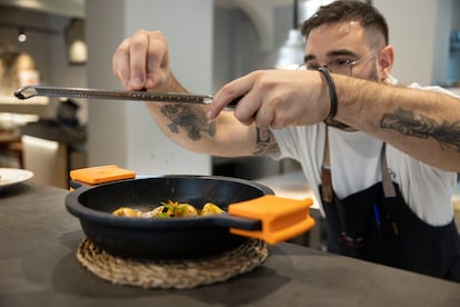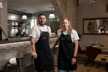 “La nuestra es una cocina tradicional catalana con una vuelta de tuerca, es decir, ponemos al día recetas del Llibre del Sent Soví con técnicas actuales”. La reivindica así el cocinero Jeffrey Ruiz (Badalona, 1992), que junto a su pareja, Helena Termes (Figueres, 1995), están al frente de La Cort del Mos, un pequeño restaurante de Palamós (Girona) con una gran carta de recetario clásico actualizado que abrió hace justo siete meses en este municipio de la Costa Brava. La segunda vindicación de estos jóvenes es el producto local y, por supuesto, de temporada. Y la tercera se podría decir que es la contención de precios. Comer aquí sale por unos 50-60 euros y quieren mantenerse en esta horquilla.