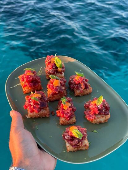 Pero esa libertad también redefine el oficio. El trabajo de chef privado dista mucho del de un restaurante, no sólo por escapar de la repetición de platos milimetrados, sino por la diferencia en el nivel de estrés. “En una cocina de restaurante se nos puede ver agobiados, de mal humor... En una casa no te lo puedes permitir. Te tiene que ver sonriente y confiado”, asegura Moreno. Aun así, le compensa: “Son muchas horas y hay que ser muy disciplinado y organizado, pero en un restaurante también he llegado a estar hasta dieciséis horas sin parar y con un estrés altísimo. Al menos aquí dependo solo de mí y me organizo a mi manera”. Miguel Orts coincide: “No es un trabajo estresante como en un restaurante, pero tiene su complicación vivir en un espacio reducido con la tripulación y con clientes distintos cada semana.”