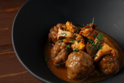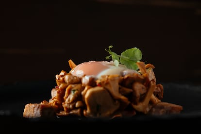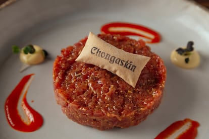 Muchos se preguntan qué significa un nombre tan peculiar. “Aquí en la montaña todas las casas tienen nombre y la nuestra se llama Chongastán. Suponemos que de la conjunción de Juan Castán, pero no está claro de dónde proviene”, comenta Begoña Martín. Venga de donde venga, la casona se ha convertido en un restaurante acogedor, con ese encanto rústico que otorgan la madera y la piedra, tan característico de las zonas de montaña, donde se puede disfrutar de guisos como las manitas de cerdo o el recado, un puchero típico que mezcla patata, garbanzo, unto rancio y verduras de su huerta que puede verse desde las ventanas del comedor. Los que prefieran el pescado también podrán darse un homenaje a base de trucha del río Cinca, servida en versión sashimi (18 euros), pulpo a la parrilla con puré trufado o bacalao con salsa de tomate casera (23 euros). Pero sin duda son los diferentes cortes y preparaciones de las terneras que crían lo que moviliza a los visitantes de la zona. Suculentas albóndigas de ternera con puré de patatas y setas (18 euros), chuletones (60 euros el kilo) y solomillos (25 euros) cocinados a la brasa, canelones o callos guisados para los más casqueros (19 euros). La oferta es tan amplia que resulta imposible fallar.