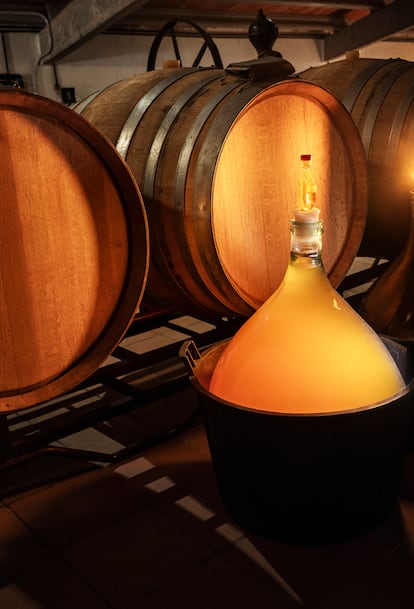 Años atrás, las fincas como esta vinificaban toda la uva que recogían, pero la industrialización y la globalización también se llevaron esta arcaica manera de cuidar los campos en el Penedès, una comarca que cuenta con 30.000 hectáreas de viñedos, que mayoritariamente forman parte de la DO Penedès, menos pequeños proyectos como el de Nuria Renom que van por libre. Precisamente, ante los problemas para etiquetar y localizar los vinos que no forman parte de una DO, nació en 2022 el Gremi de Vinyataires Lliures, una organización para defender los intereses de estos artesanos del vino.