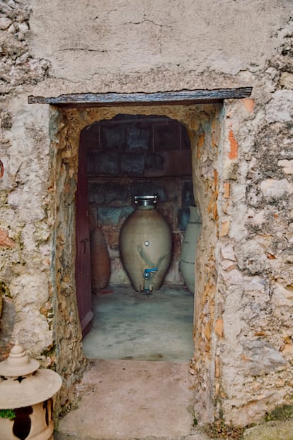 Para entender mejor el funcionamiento de sus piezas y poder asesorar a sus clientes, Carles decidió empezar a elaborar su propio vino de mínima intervención: ViTal. “Pensé ‘¿cómo voy a hablar yo con alguien del sector del vino si mi especialidad solamente es la cerámica?’. Compartimos el mismo idioma, pero no el mismo lenguaje”. En sus vinos solo hay uva, nada más. No se toma temperatura de fermentación, no se clarifica y no interviene ningún tipo de maquinaria. “Mi abuelo no tenía termómetro ni densímetro, y hacía vino. Tampoco tenían todos estos aparatos en la Antigüedad. Se suele decir que los griegos y los romanos no bebían buen vino, pero cuando ves las copas que usaban te das cuenta de que son diseños pensados para disfrutar esta bebida. Son copas pequeñas, de cerámica, con un encaje perfecto para el labio. Mi intención es demostrar que nuestra especie no se ha tirado 5.000 años bebiendo vinos malos”.
